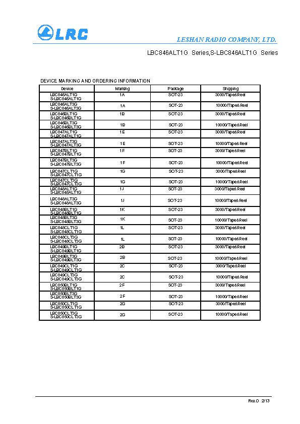 LBC847ALT1G SOT-23 NPN LRC三級管