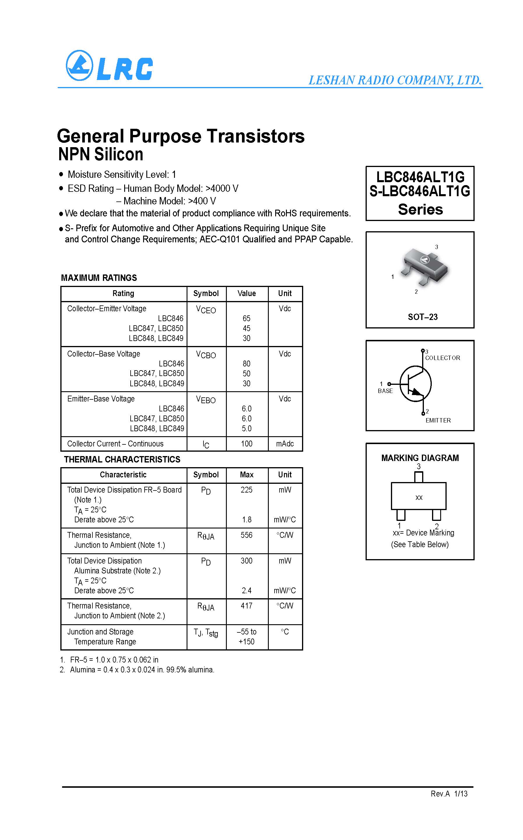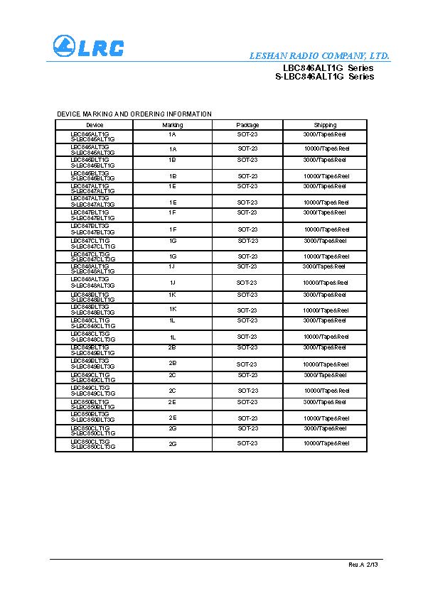> LBC850BLT1G SOT-23 NPN LRC三級管