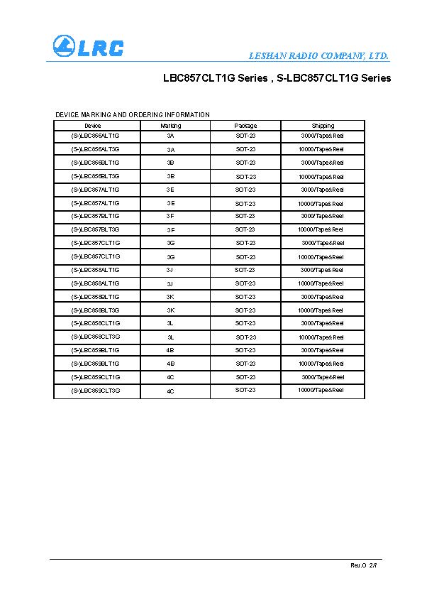 > LBC857ALT1G SOT-23 PNP LRC三級管