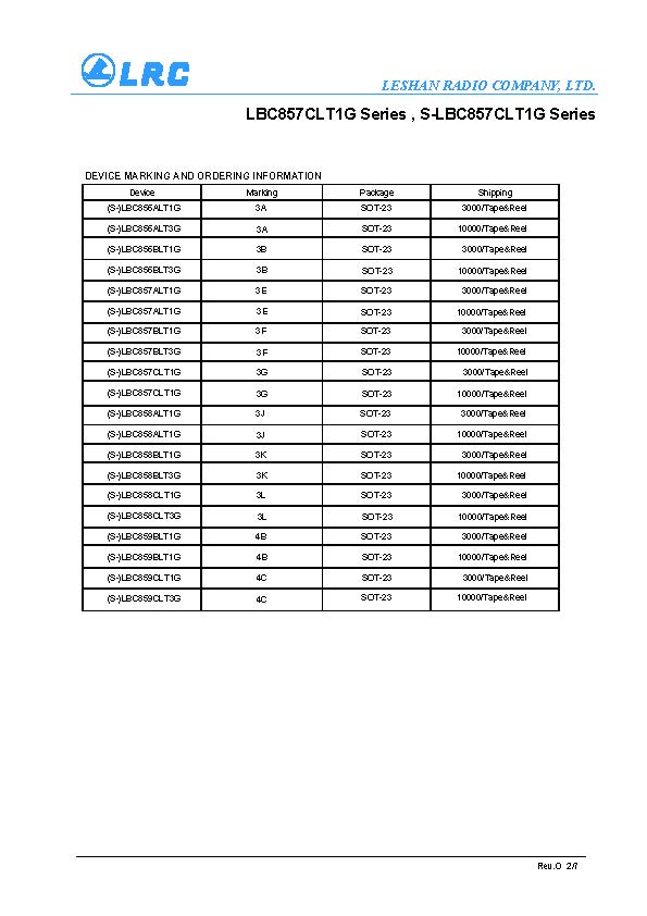 LBC857CLT1G SOT-23 PNP LRC三級管