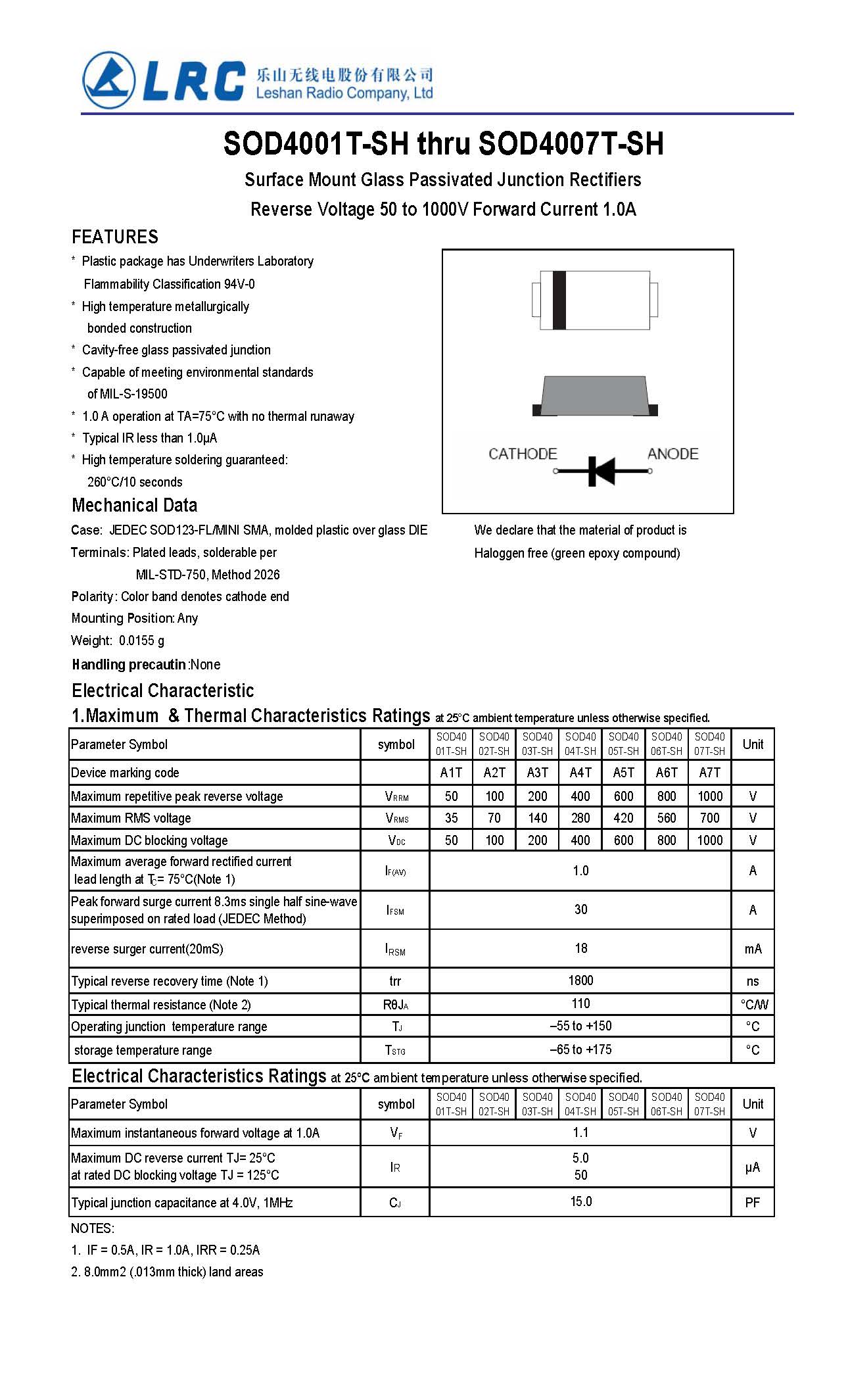 SOD4002T-SH SOD123-FL LRC整流二級管
