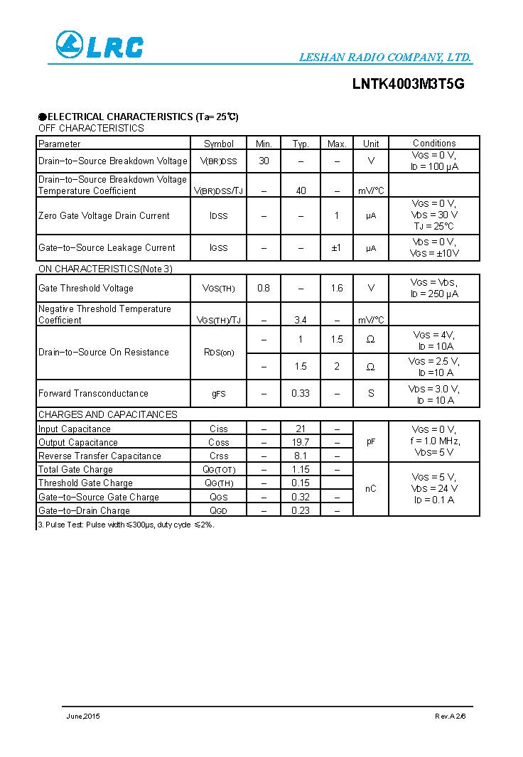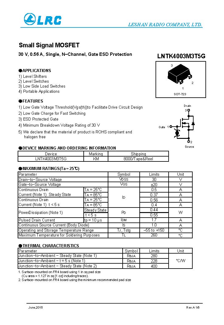 > LNTK4003M3T5G SOT-723 LRC MOS管