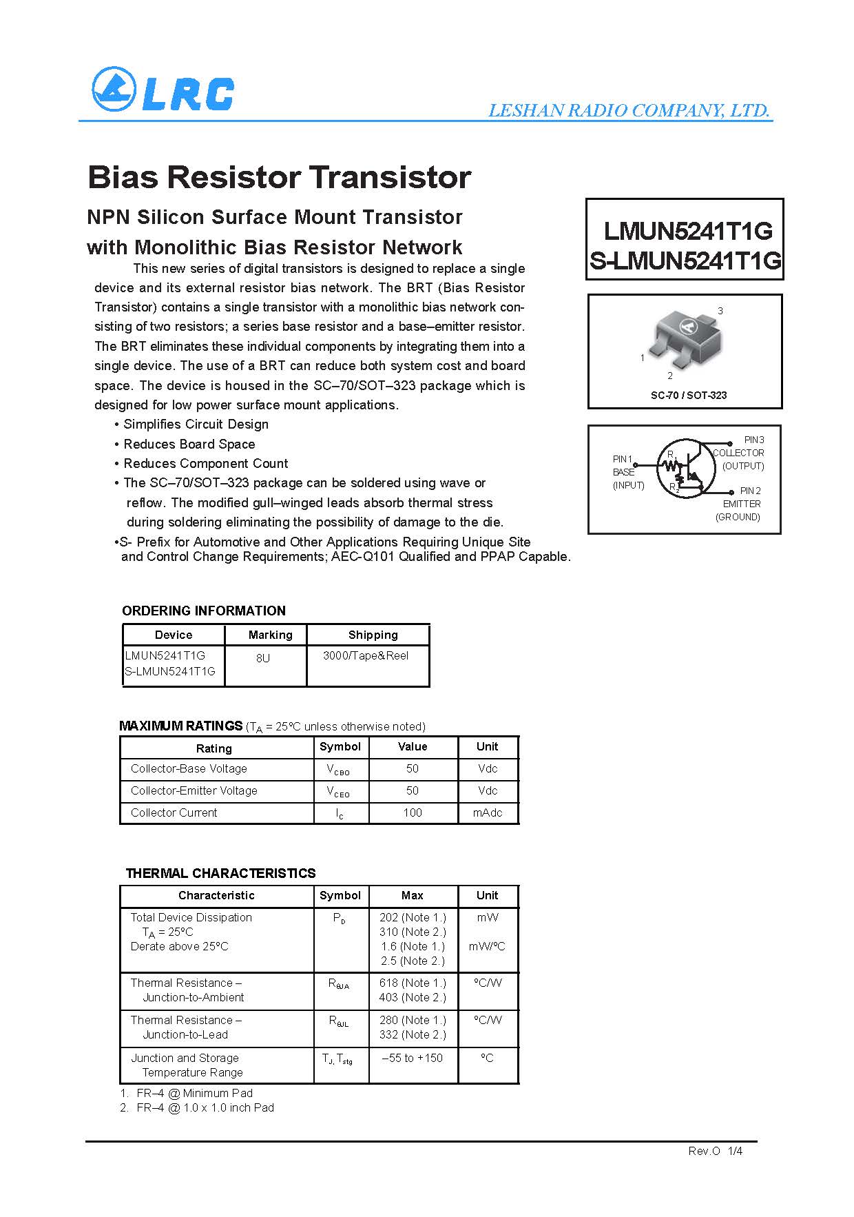 > LMUN5241T1G SC-70 LRC NPN 數字三級管