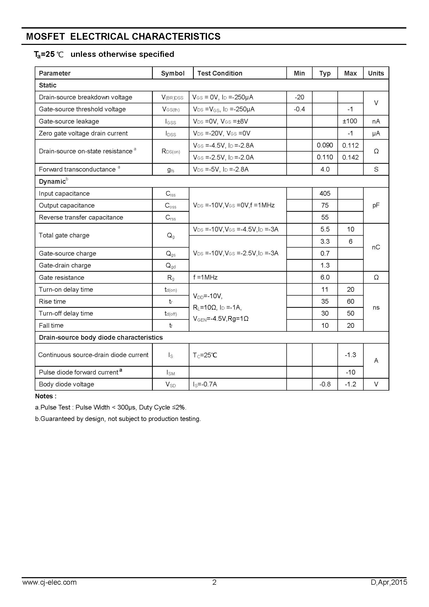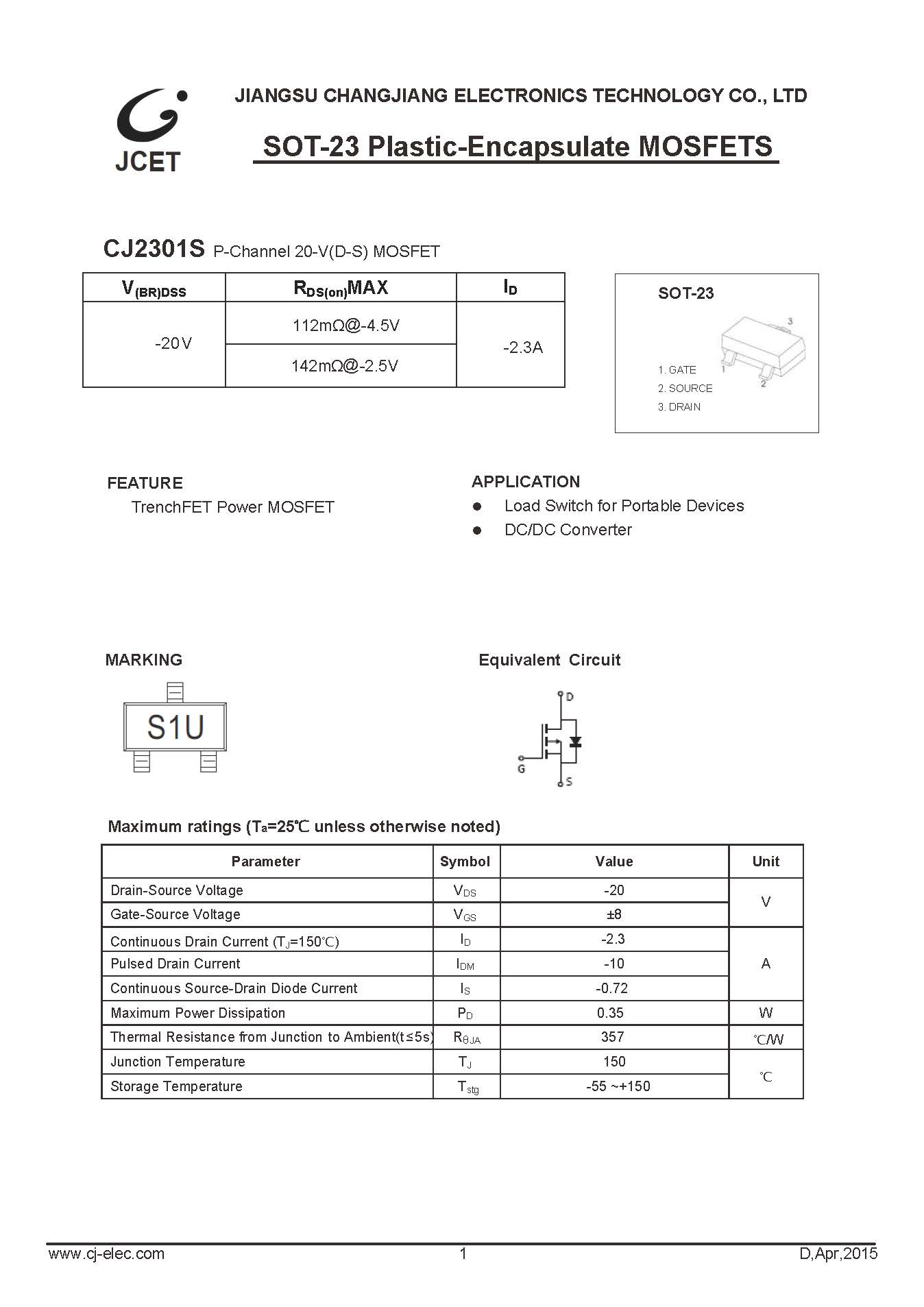 > CJ2301S P-ch MOS管 SOT-23 長電