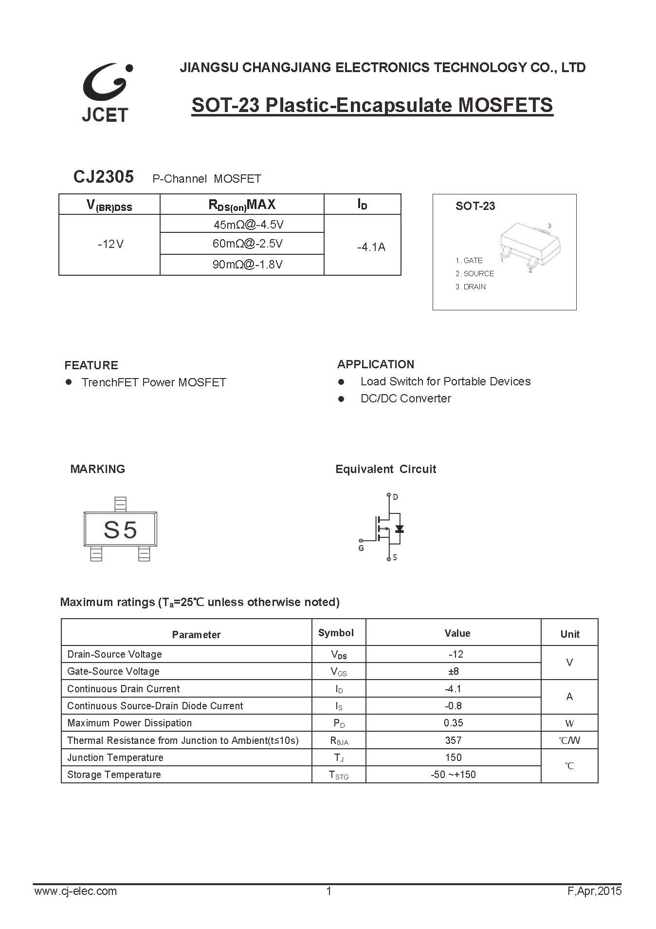 CJ2306 N-ch MOS管 SOT-23 長電