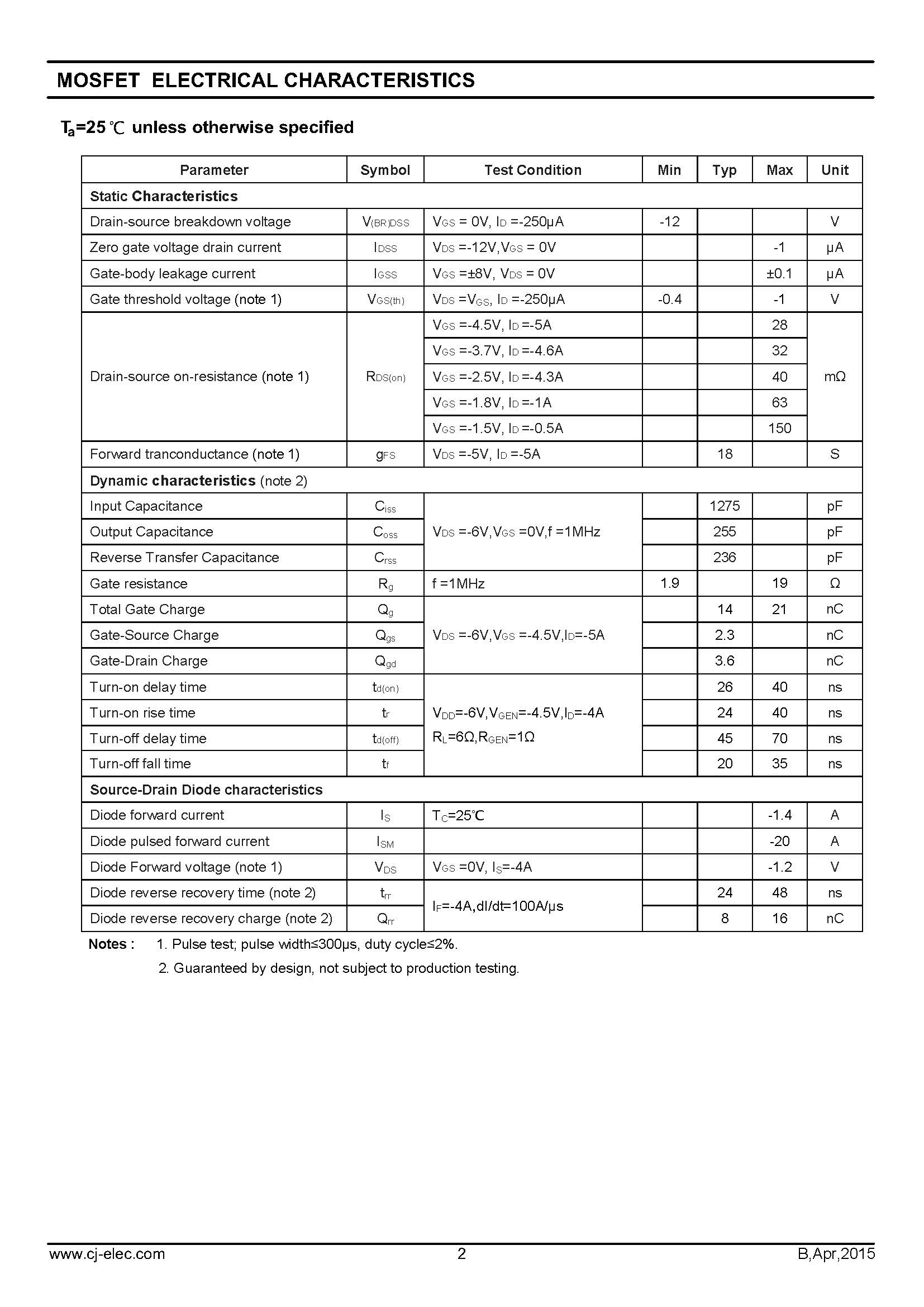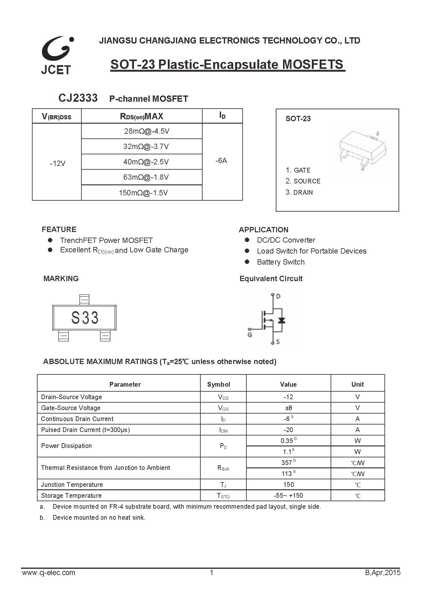 > CJ2333 P-ch MOS管 SOT-23 長電