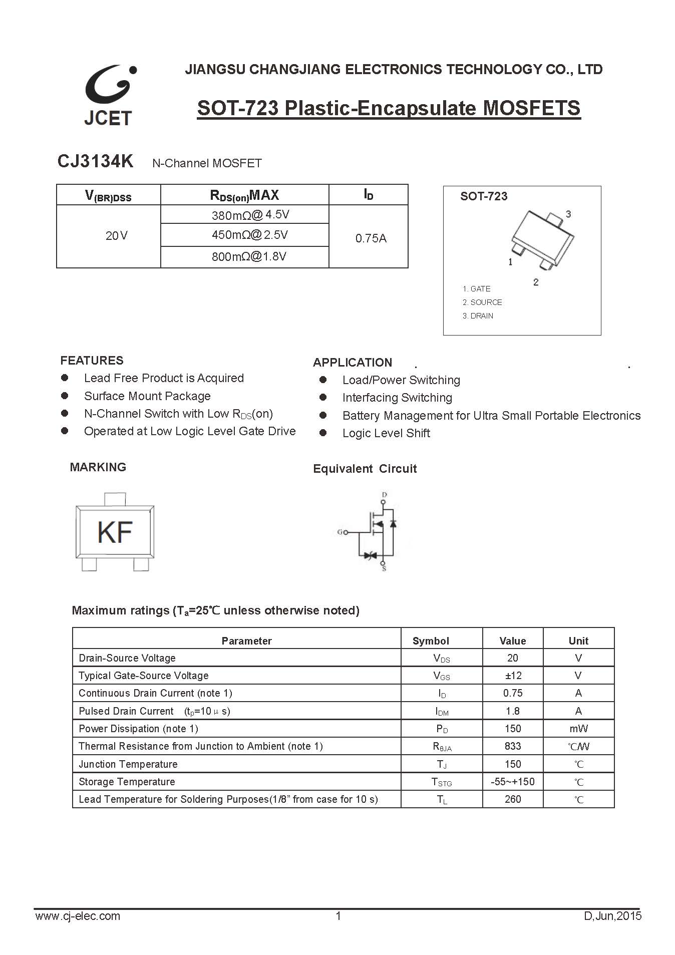 > CJ3134K N-ch MOS管 SOT-723 長電