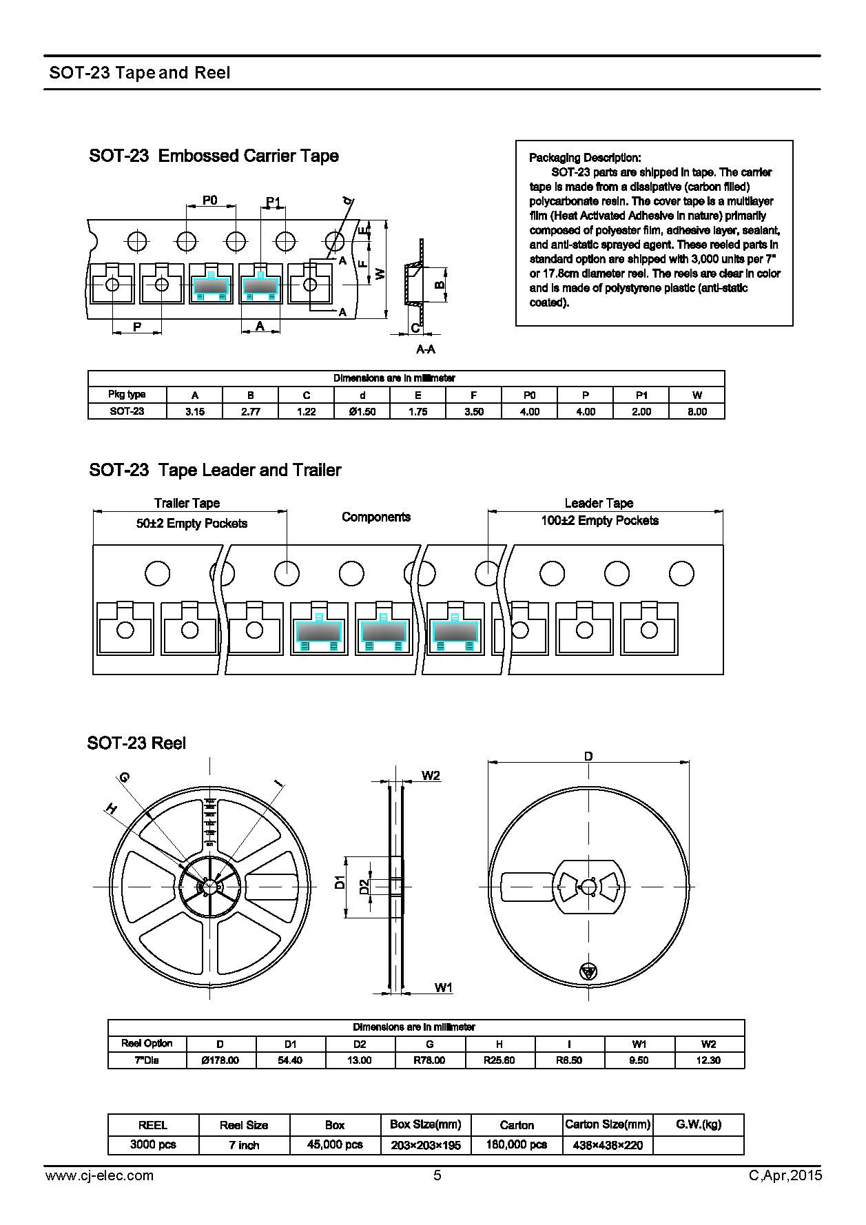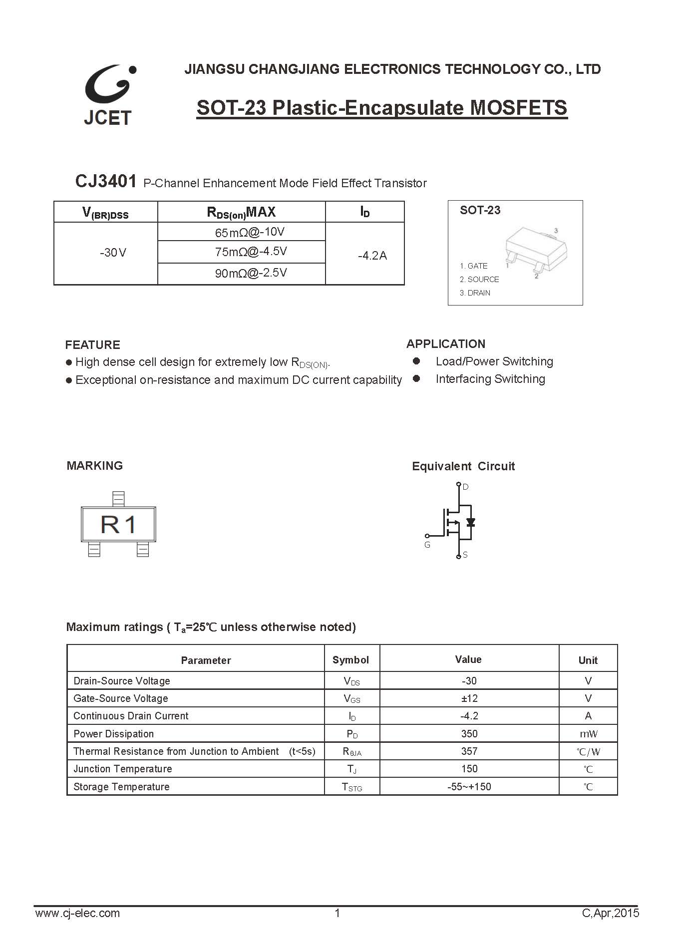 CJ3401 SOT-23 P-ch MOS管 長(zhǎng)電