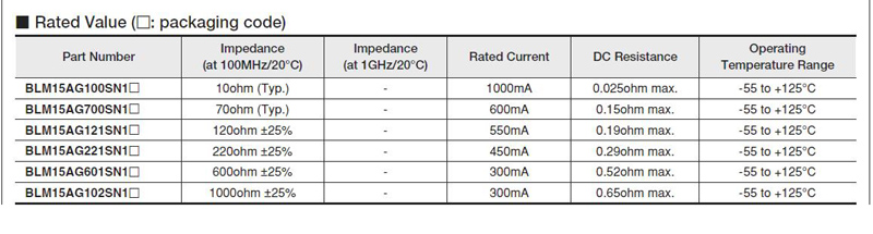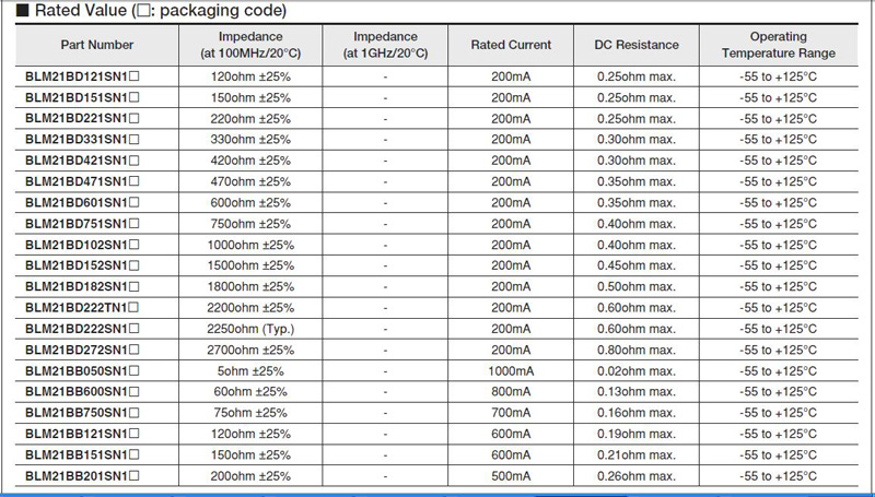 > 村田磁珠系列0201/0402/0603/0805/1206