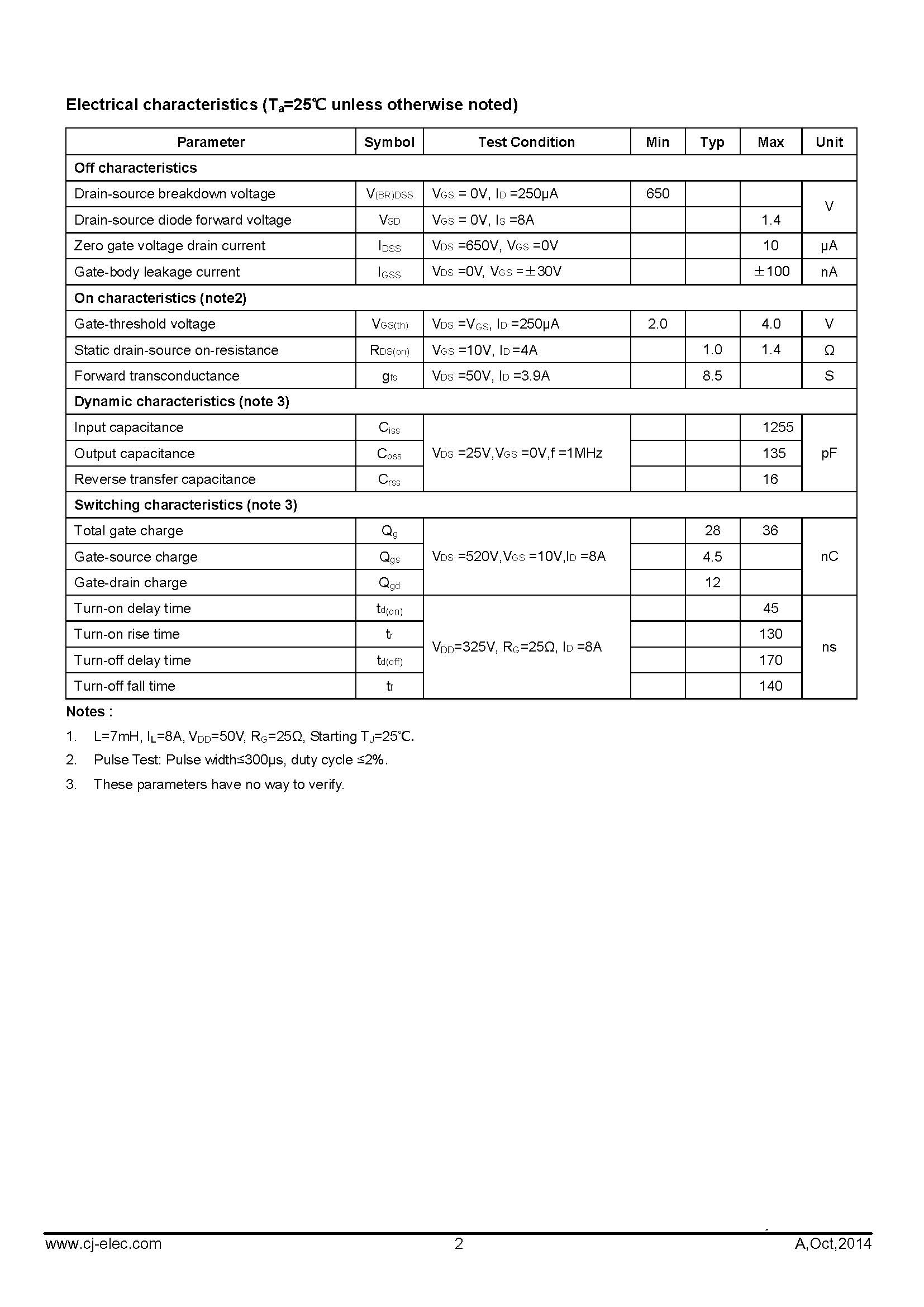 CJB08N65 N-ch MOS管 TO-263-2L 長電