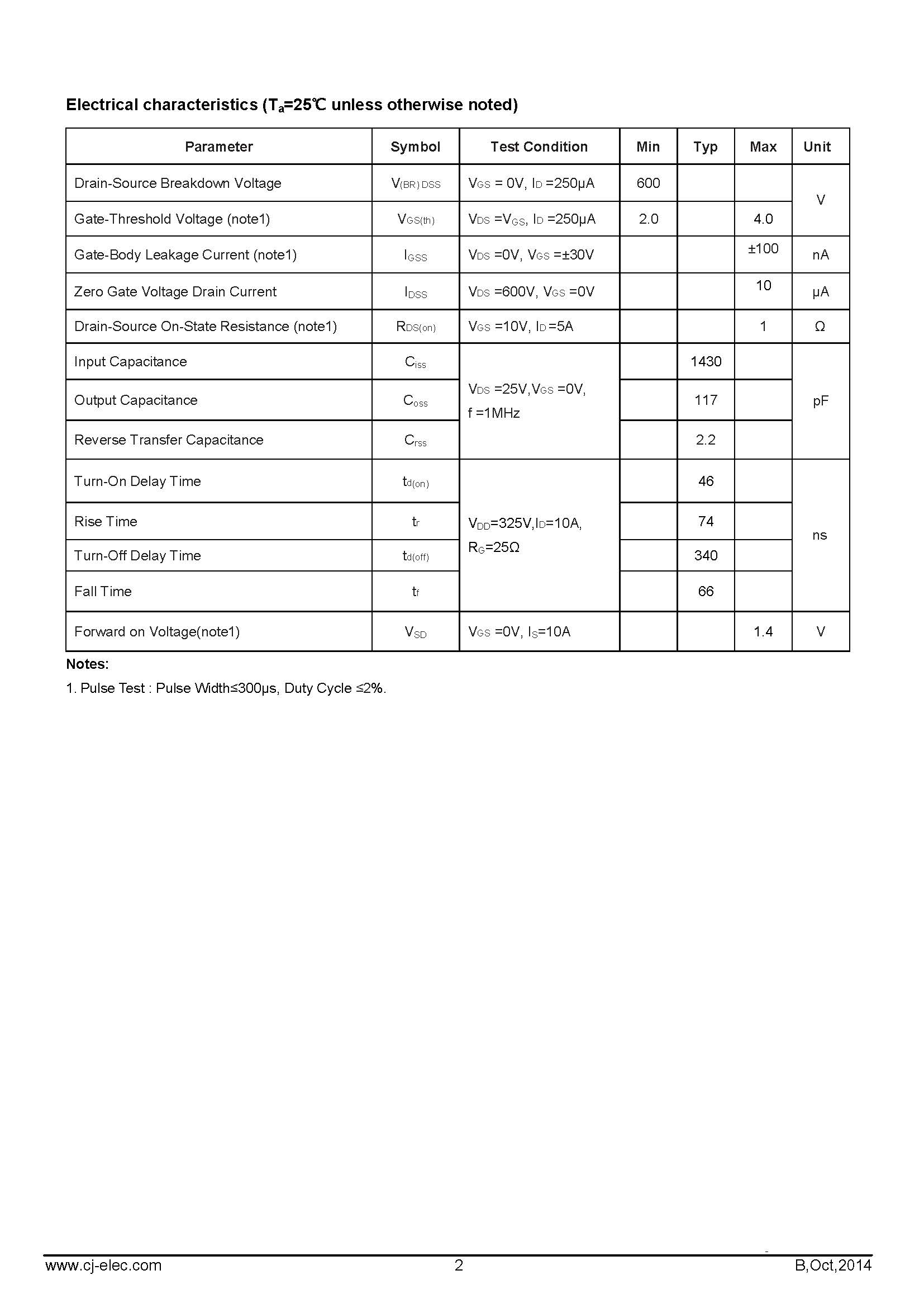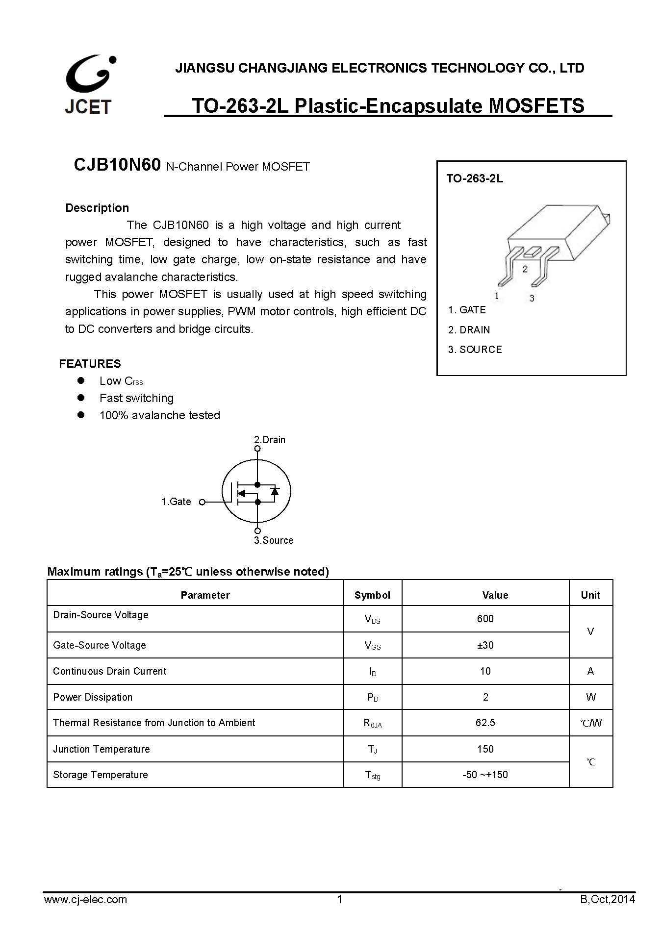CJB10N60 N-ch MOS管 TO-263-2L 長電