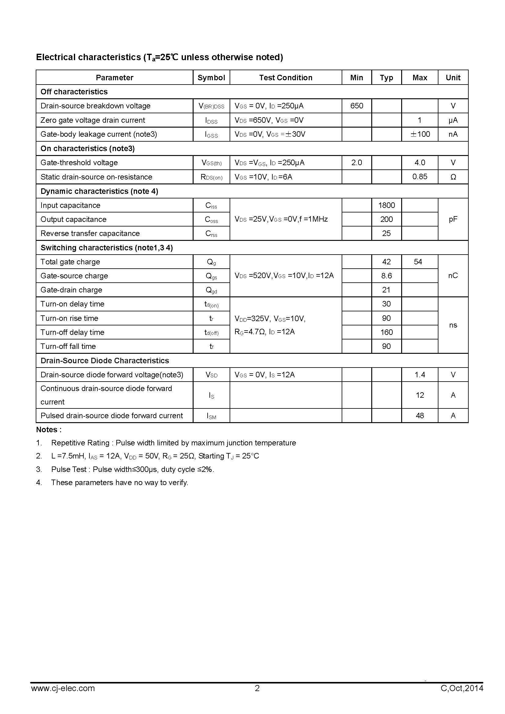 > CJP12N65 N-ch MOS管 TO-220-3L 長電