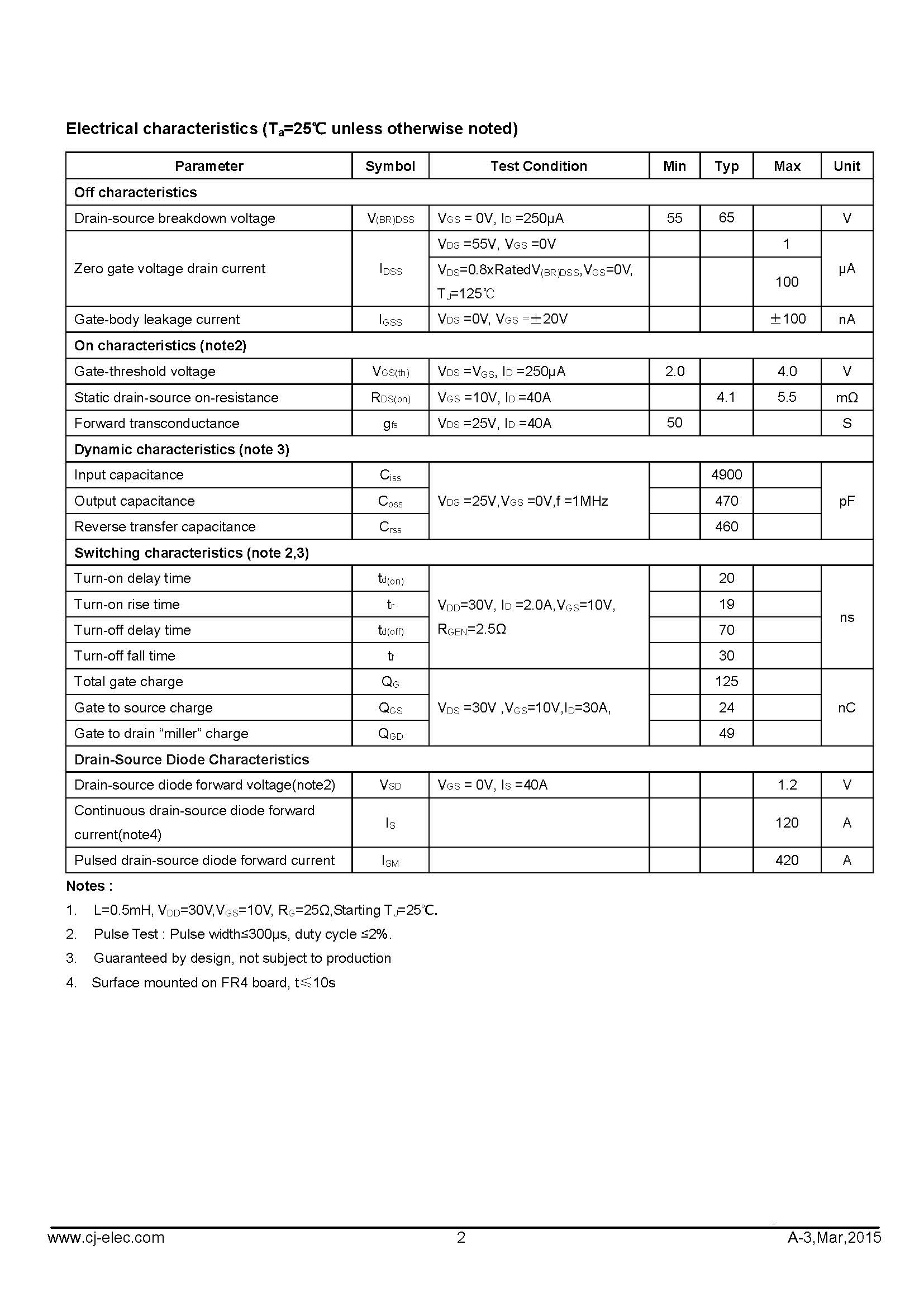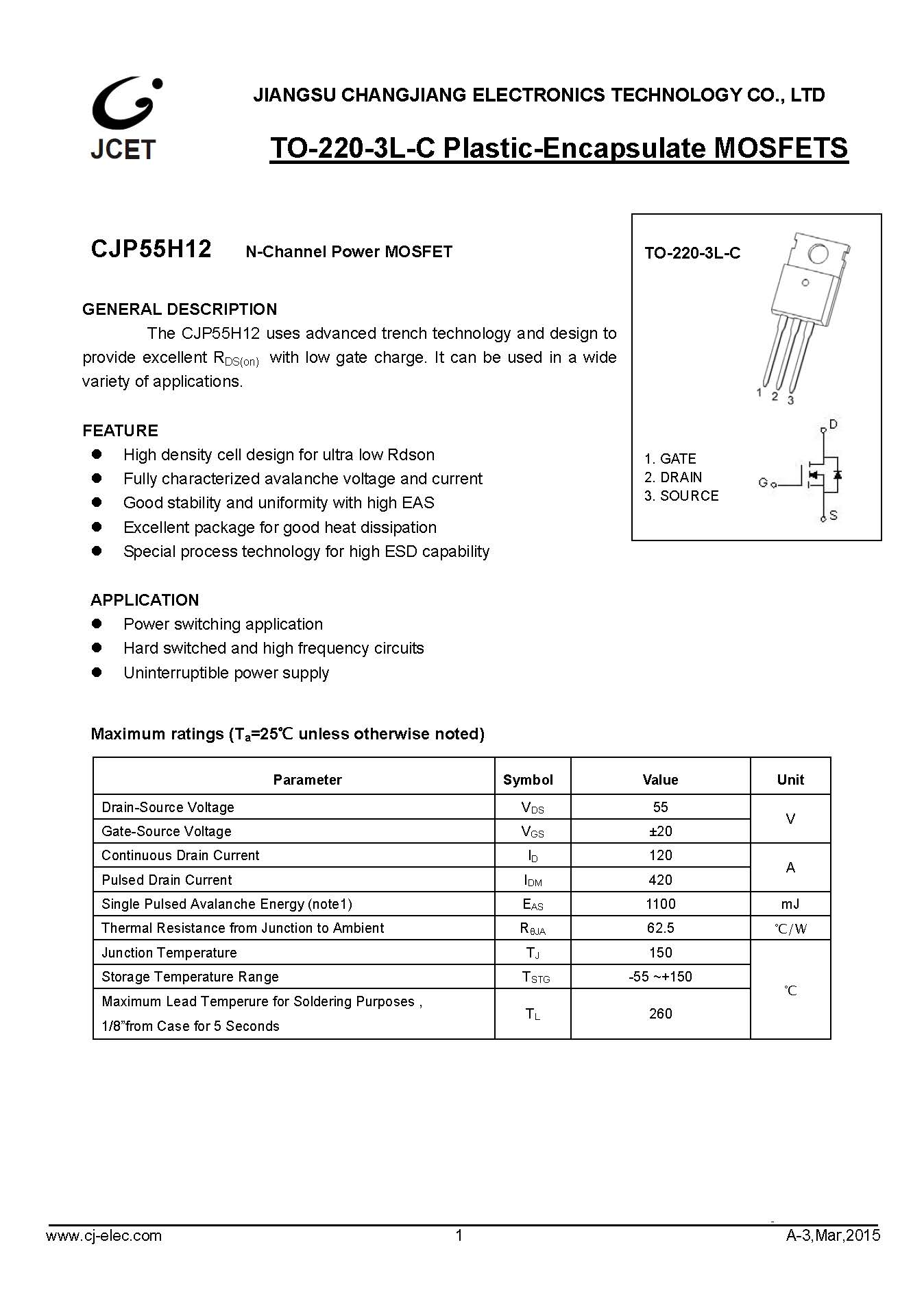 > CJP55H12* N-ch mos管 TO-220-3L-C 長電