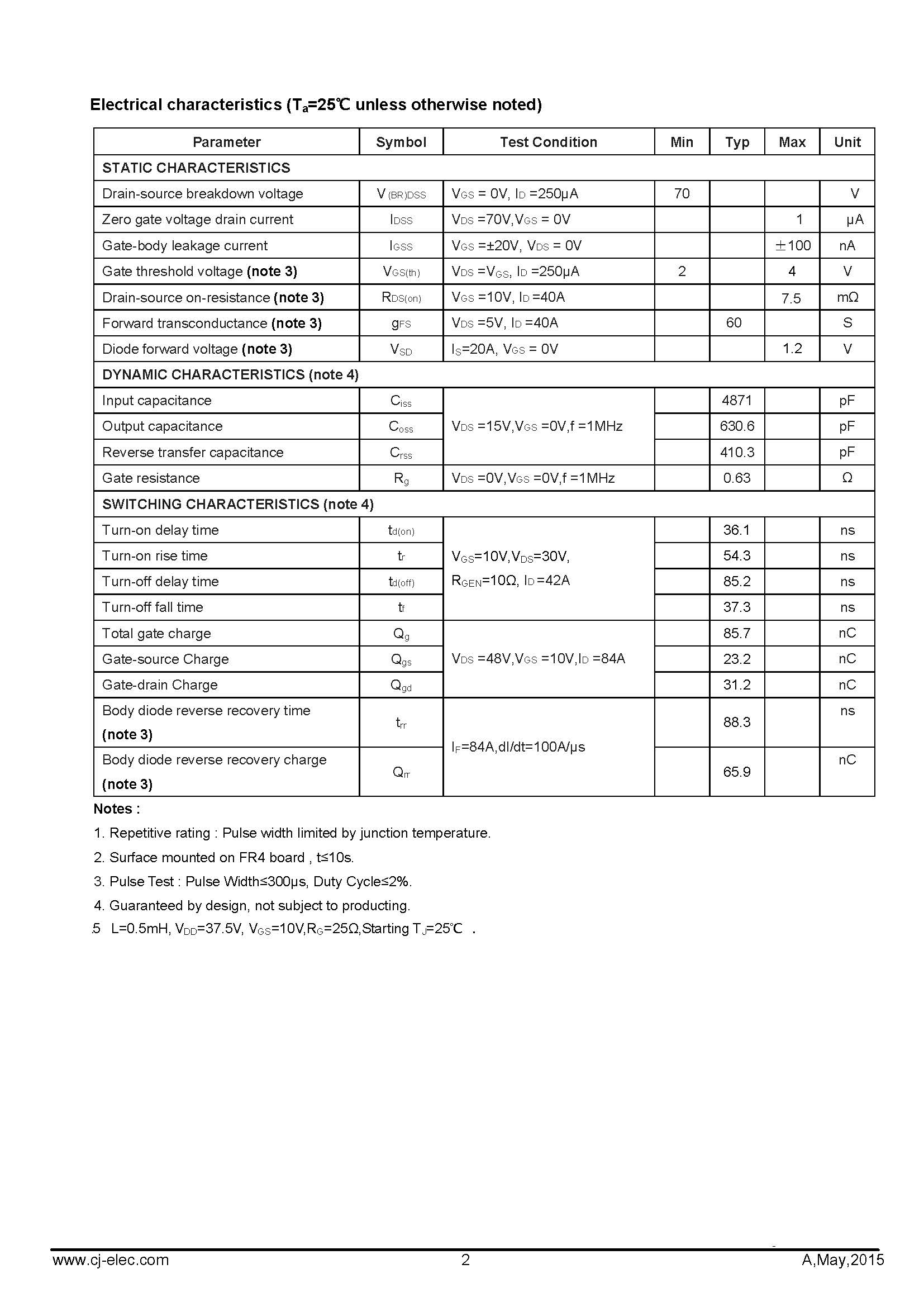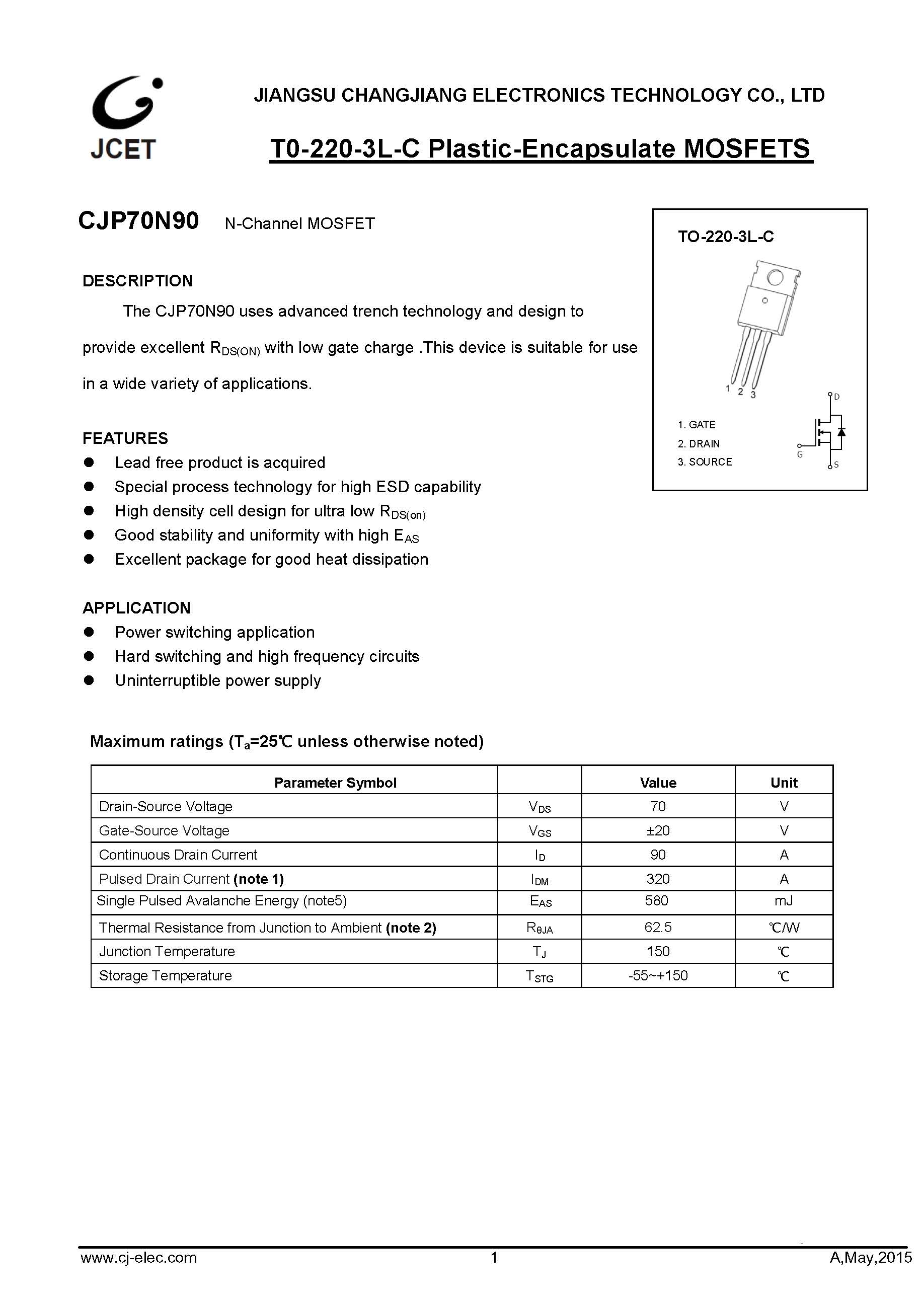 > CJP70N90 N-ch MOS管 TO-220-3L-C 長電
