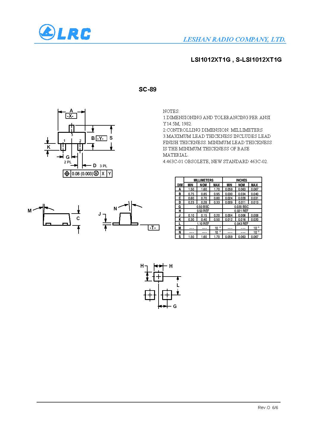LSI1012XT1G SC-89 20V N-Channel(with ESD) LRC MOS管