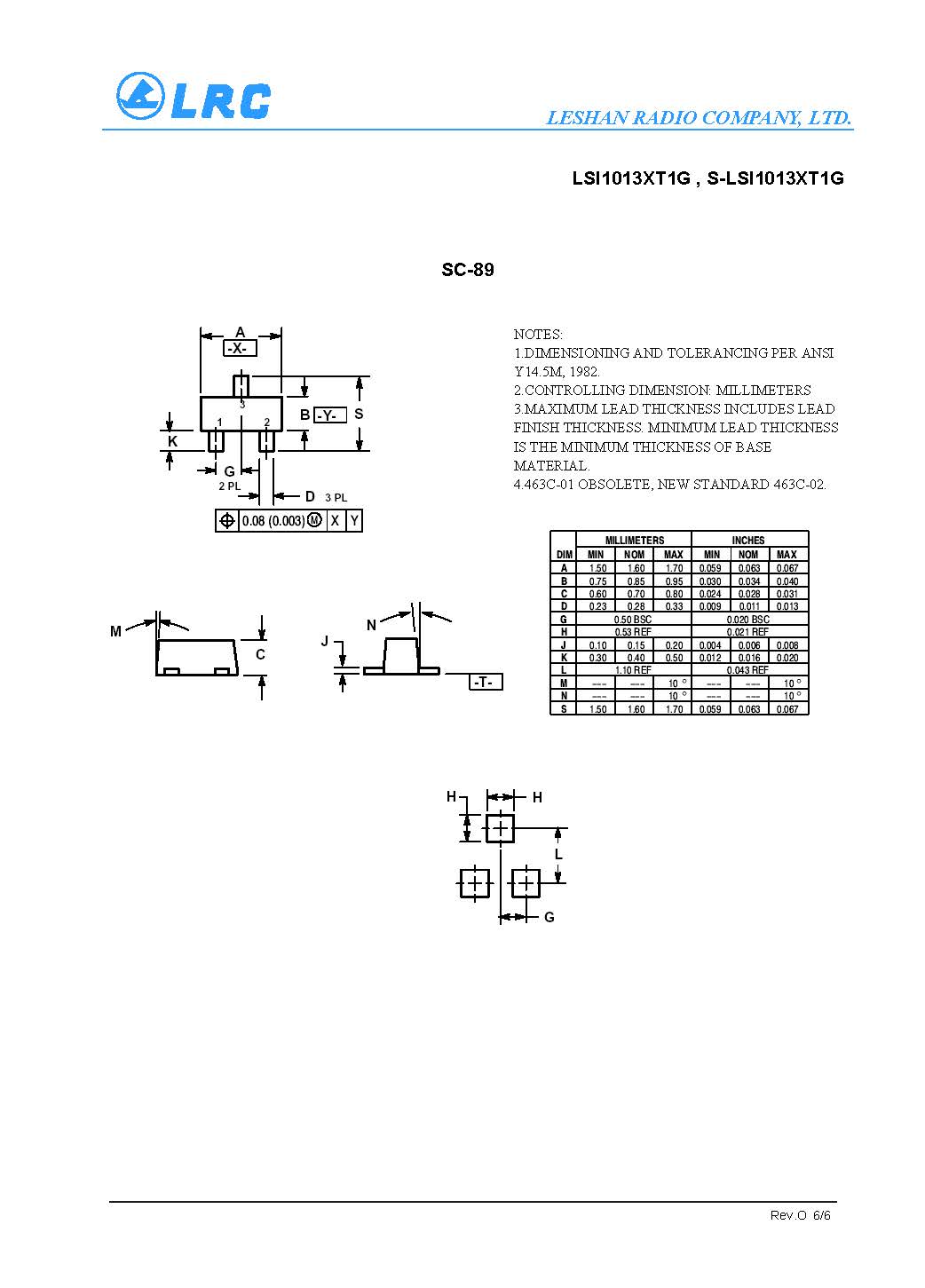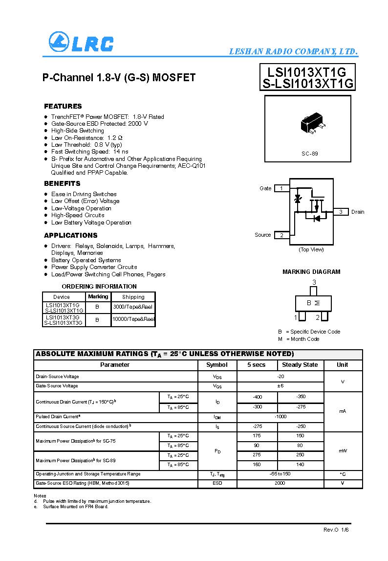 LSI1013XT1G SC-89 P-Channel(with ESD) 20V LRC MOS管