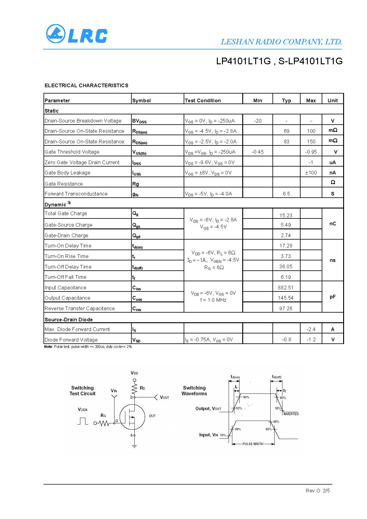 LP4101LT1G SOT-23 20V P-Channel LRC MOS管