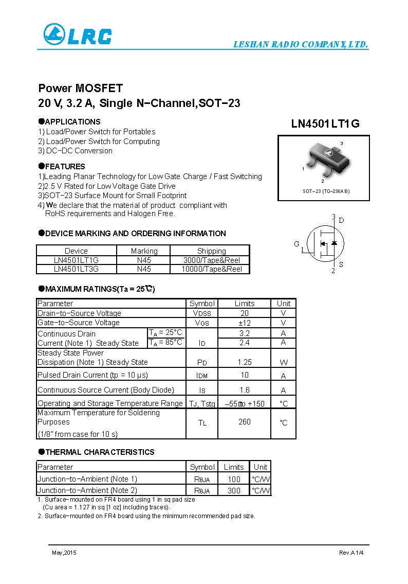 LN4501LT1G SOT-23 N-Channel 20V LRC MOS管