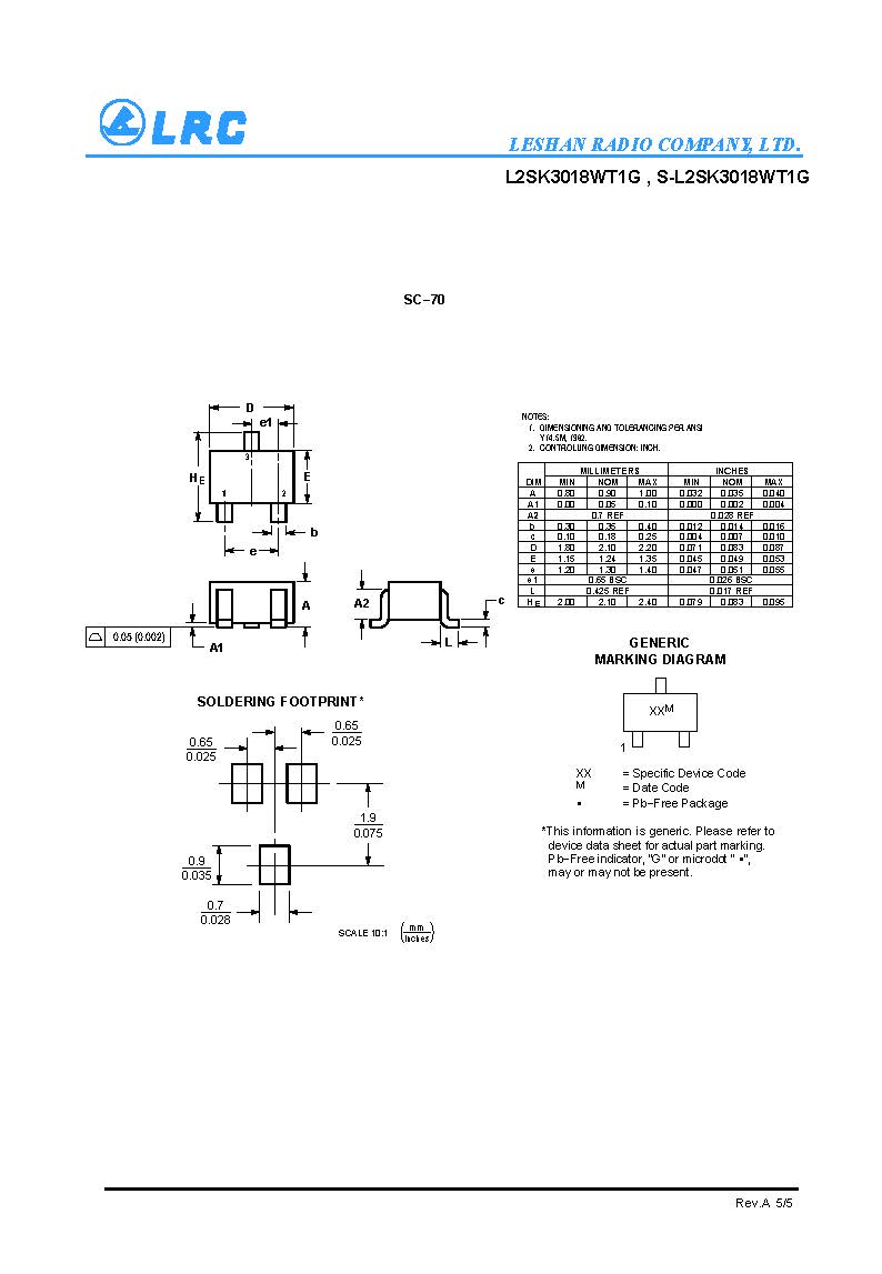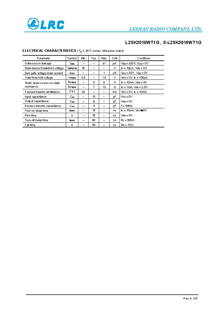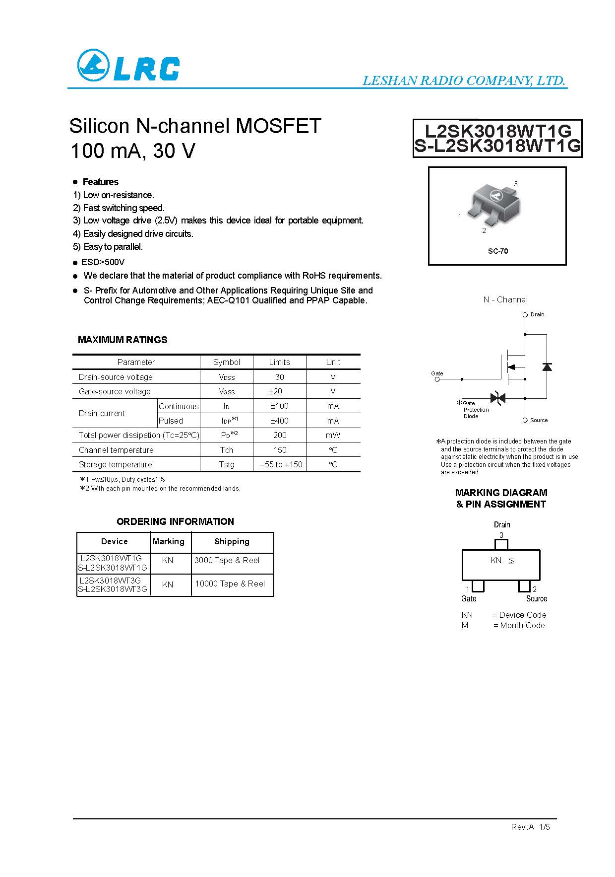 > L2SK3018WT1G SC-70 N-Channel(with ESD) 30V LRC MOS管