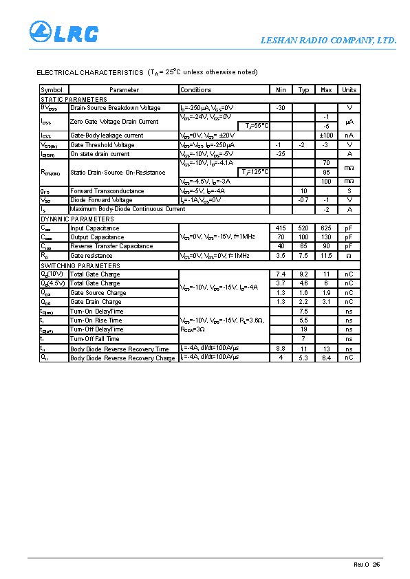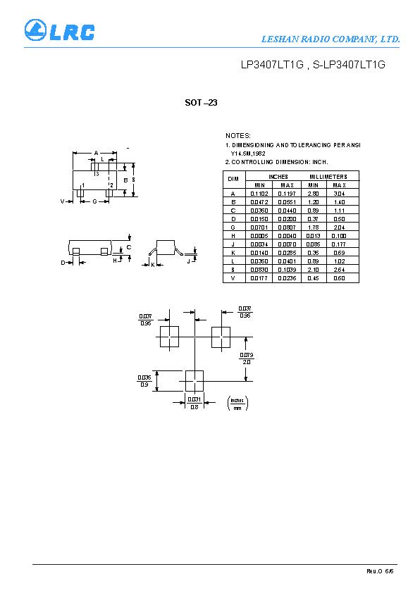 LP3407LT1G SOT-23 30V P-Channel LRC MOS管