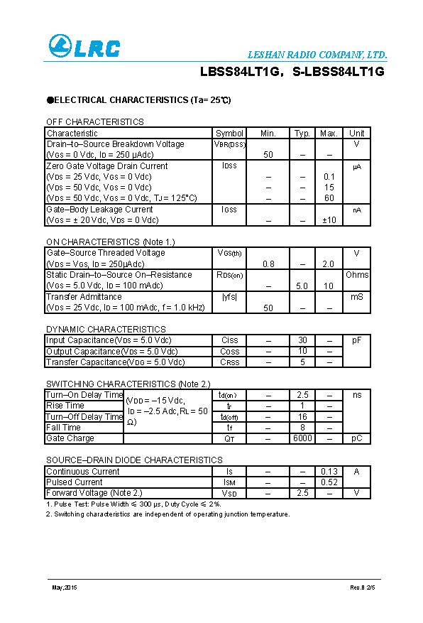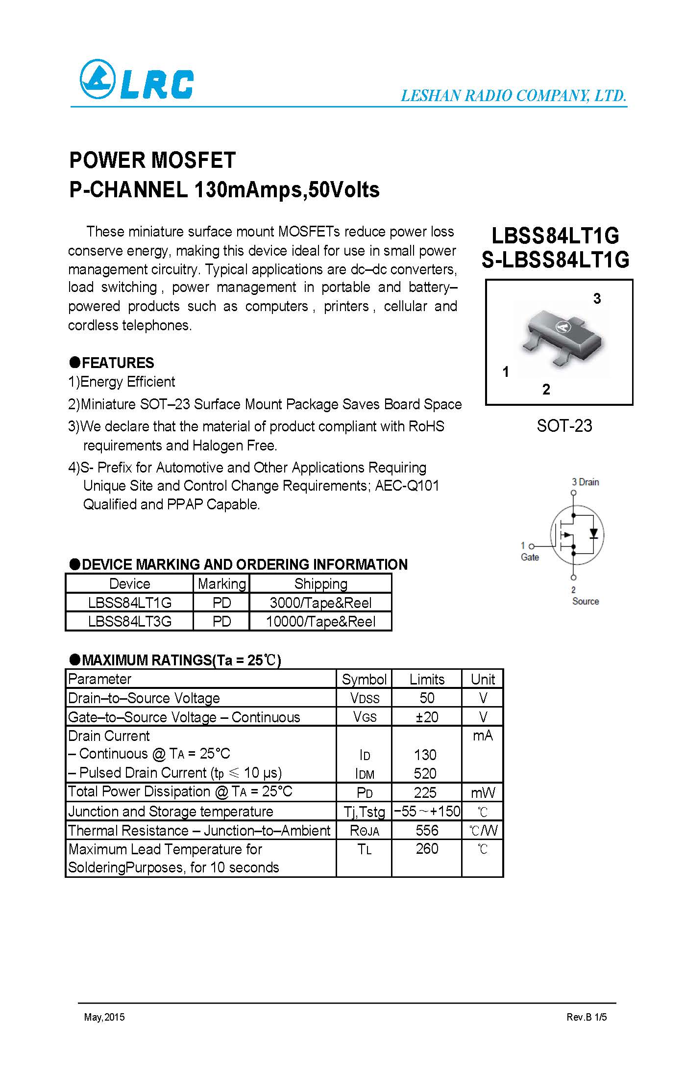 LBSS84LT1G SOT-23 P-Channel 50V LRC MOS管