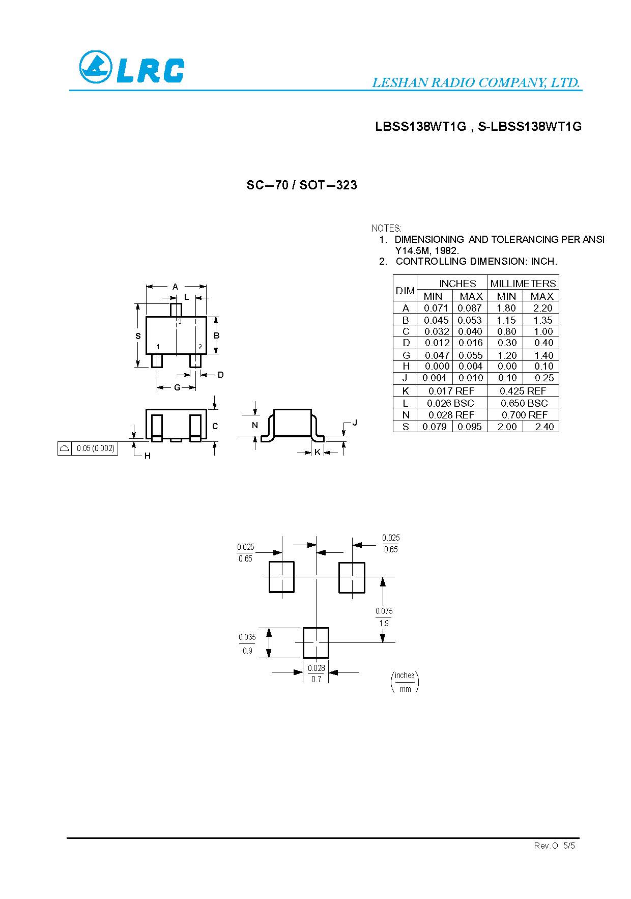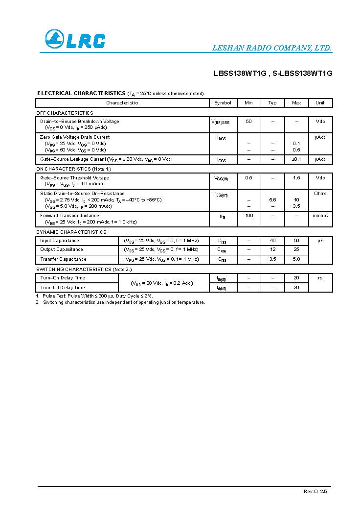 LBSS138WT1G SC-70 N-Channel 50V LRC MOS管