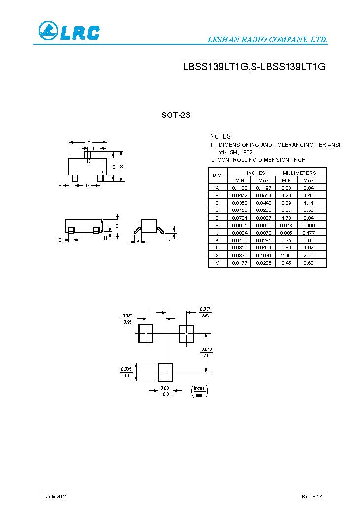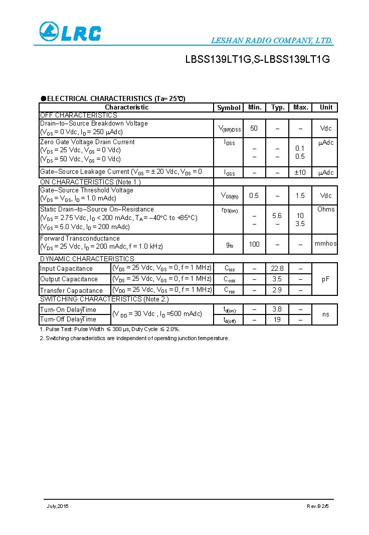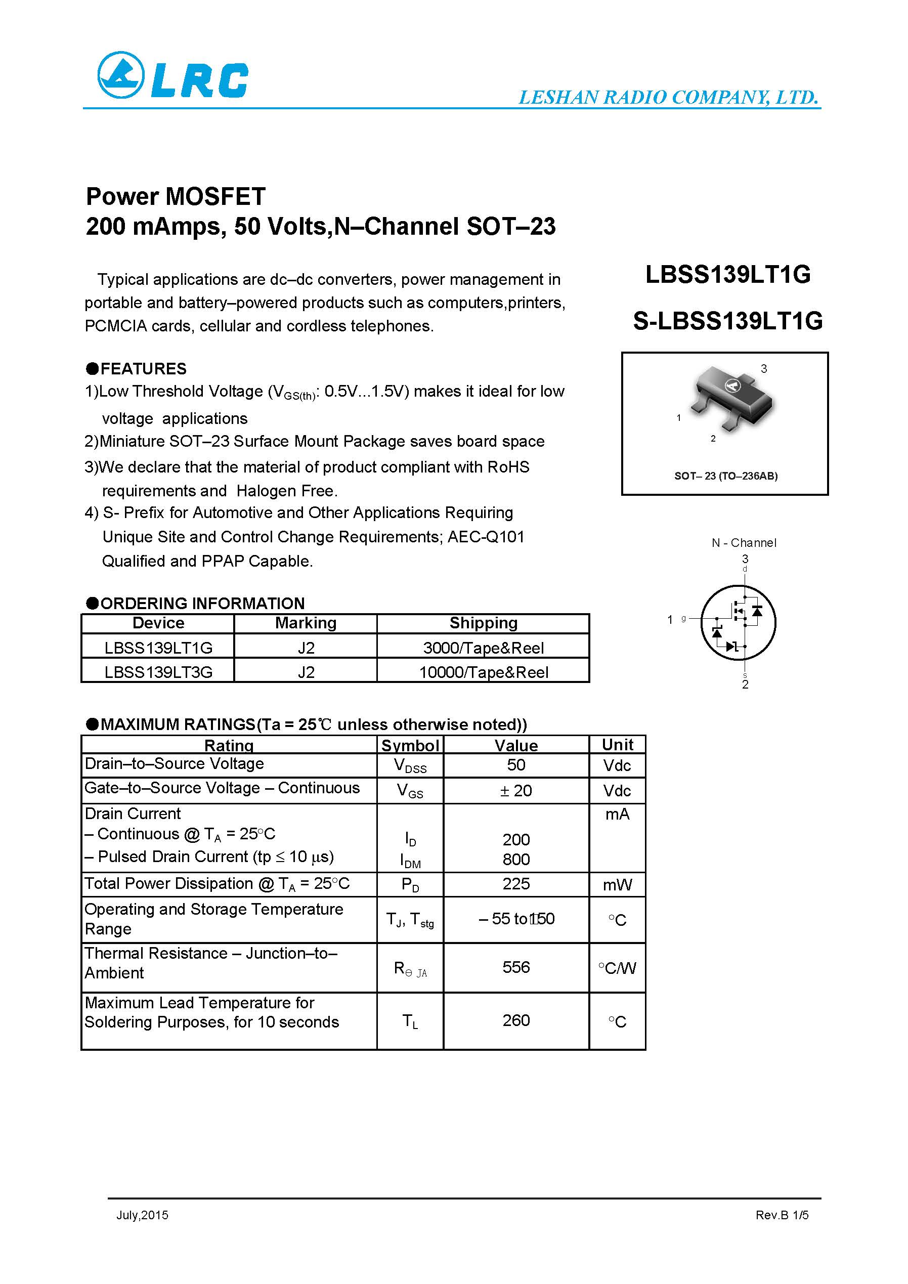 LBSS139LT1G SOT-23 50V N-Channel(with ESD) LRC MOS管