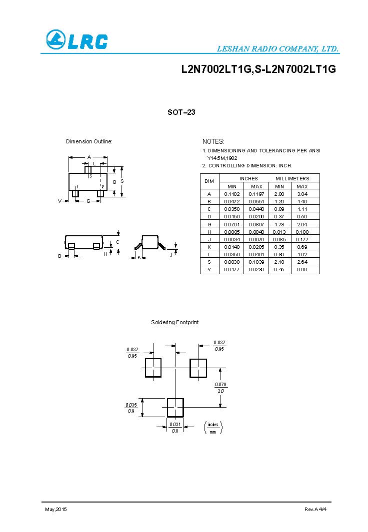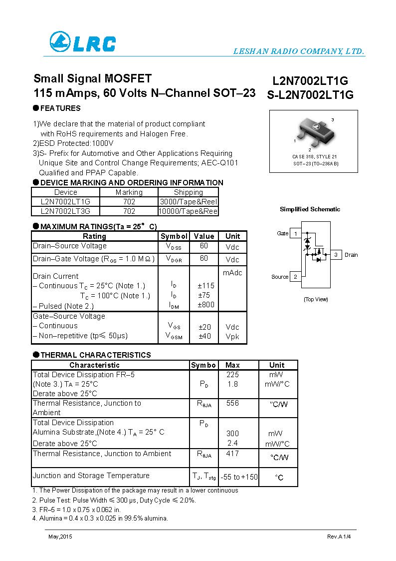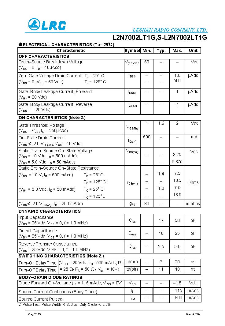 L2N7002LT1G SOT-23 N-Channel(with ESD) 60V LRC MOS管