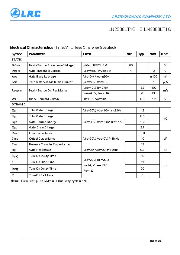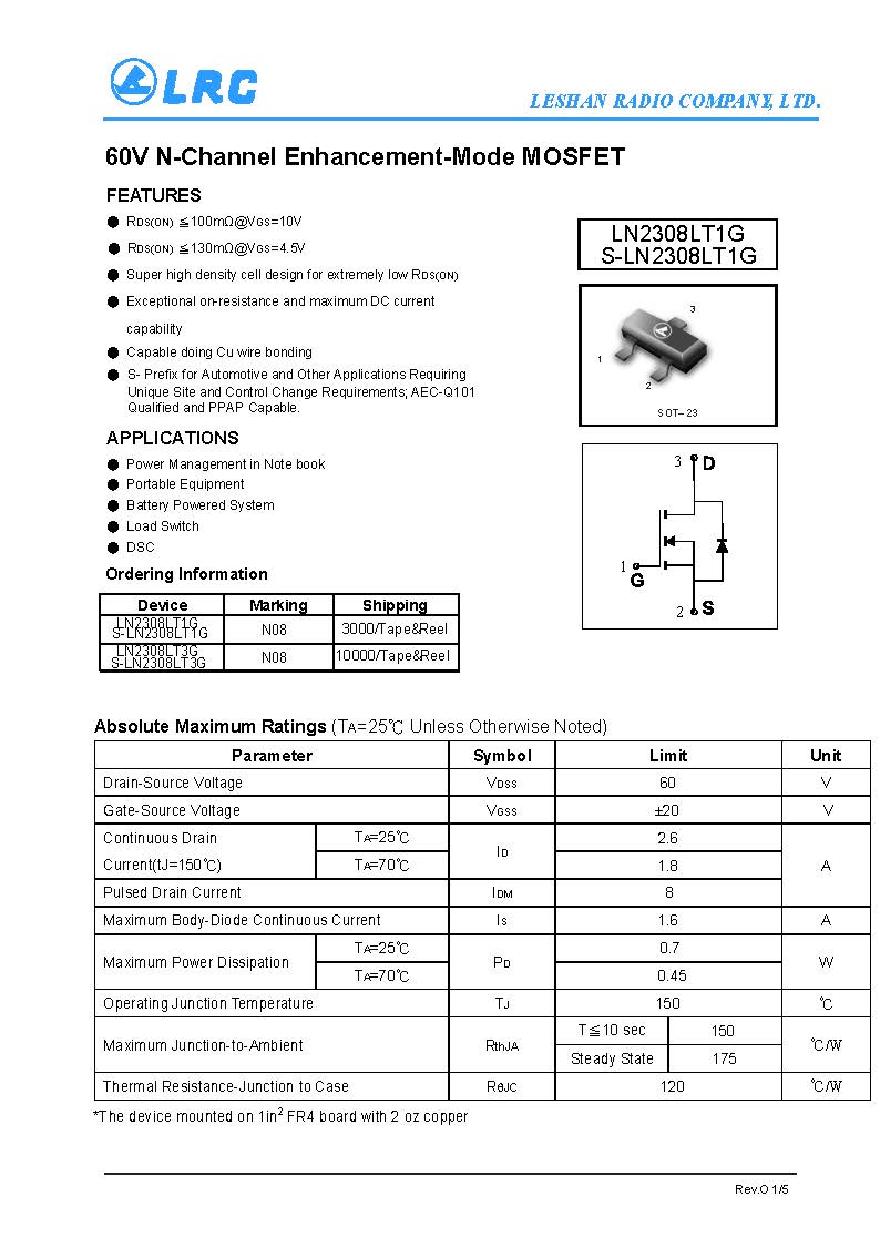 LN2308LT1G SOT-23 N-Channel 60V LRC MOS管
