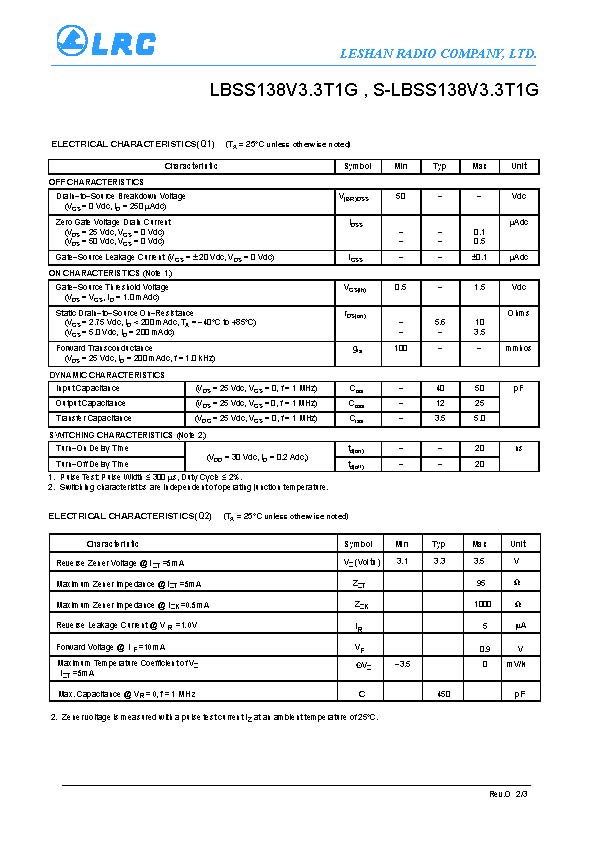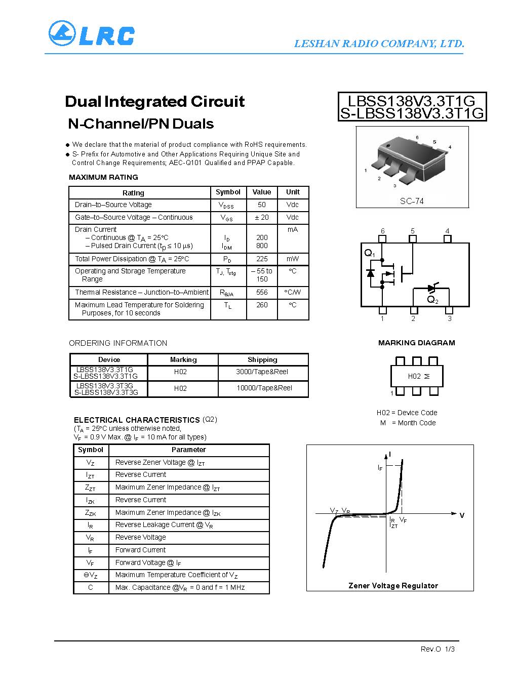LBSS138V3.3T1G SC-74 MOSFET+ZENER 50V LRC MOS管