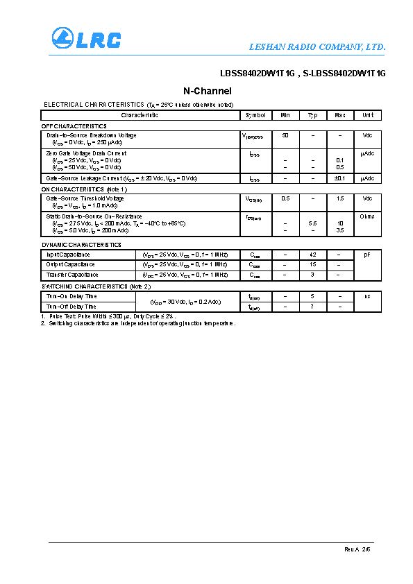 LBSS8402DW1T1G SC-88 50V N-Channel/P-Channel LRC MOS管