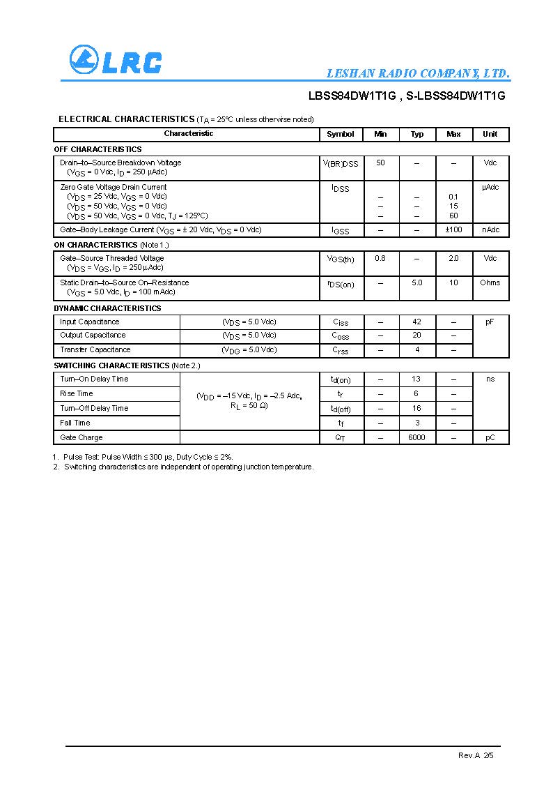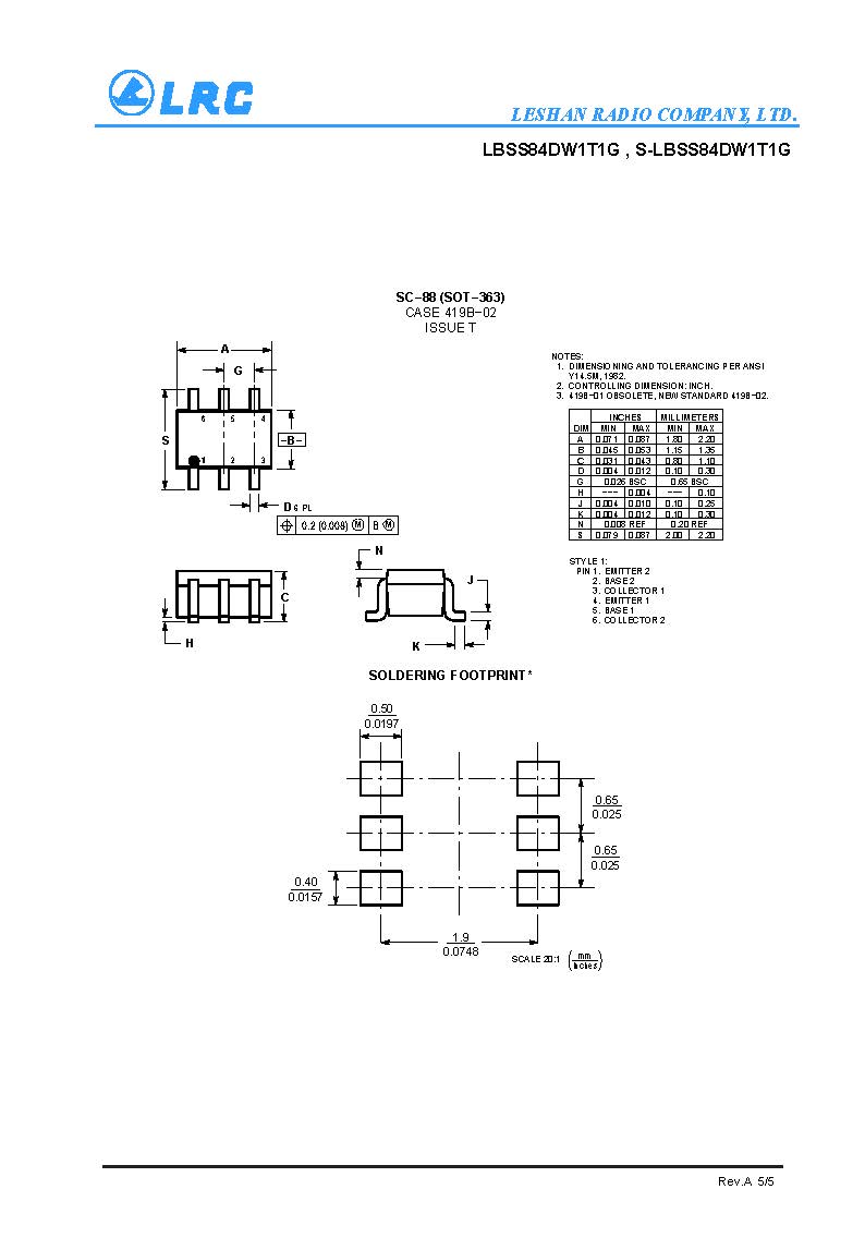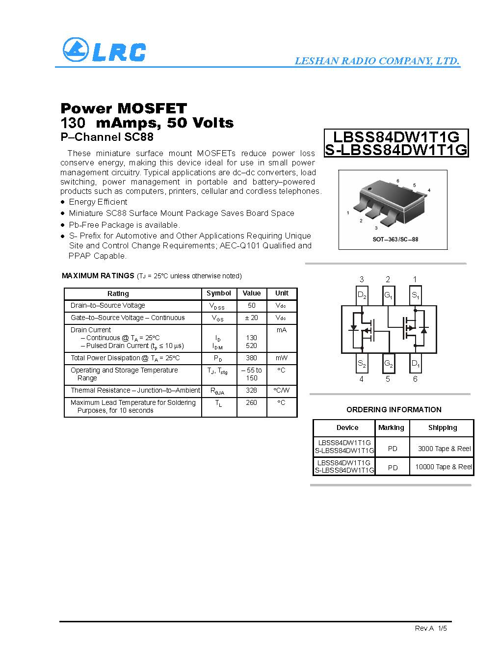 LBSS84DW1T1G SC-88 P-Channel 50V LRC MOS管