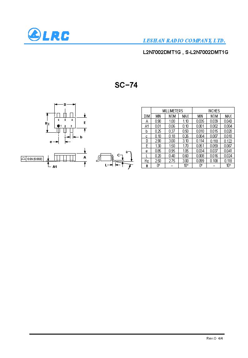 > L2N7002DMT1G SC-74 Dual-N-Channel(with ESD) 60V LRC MOS管