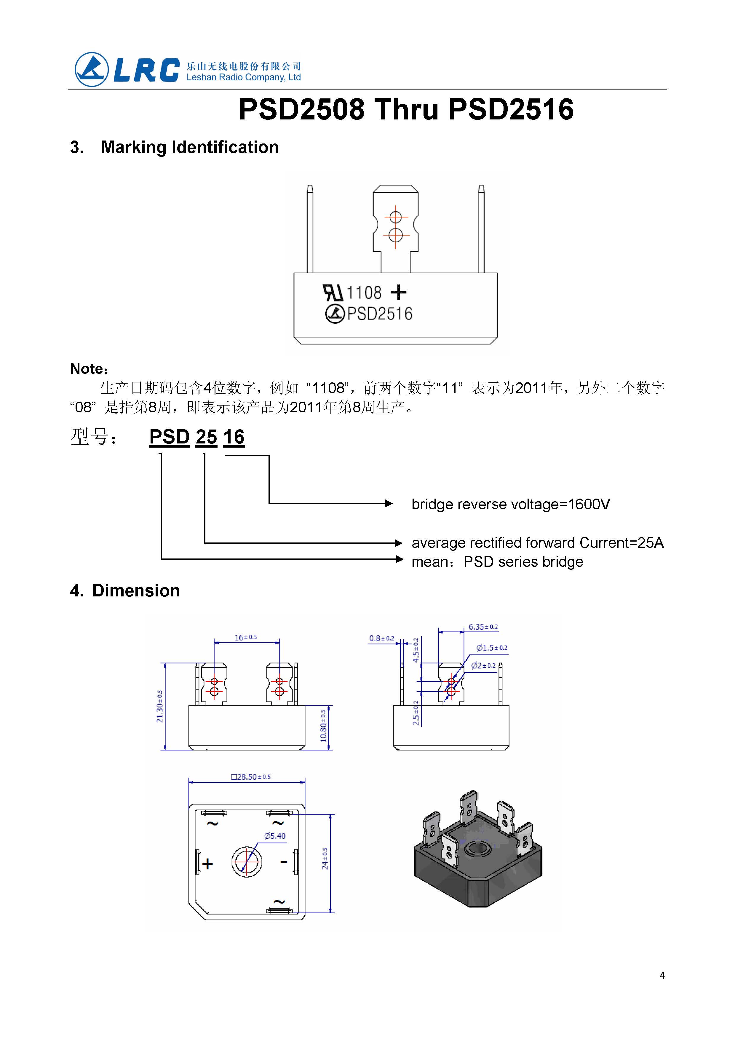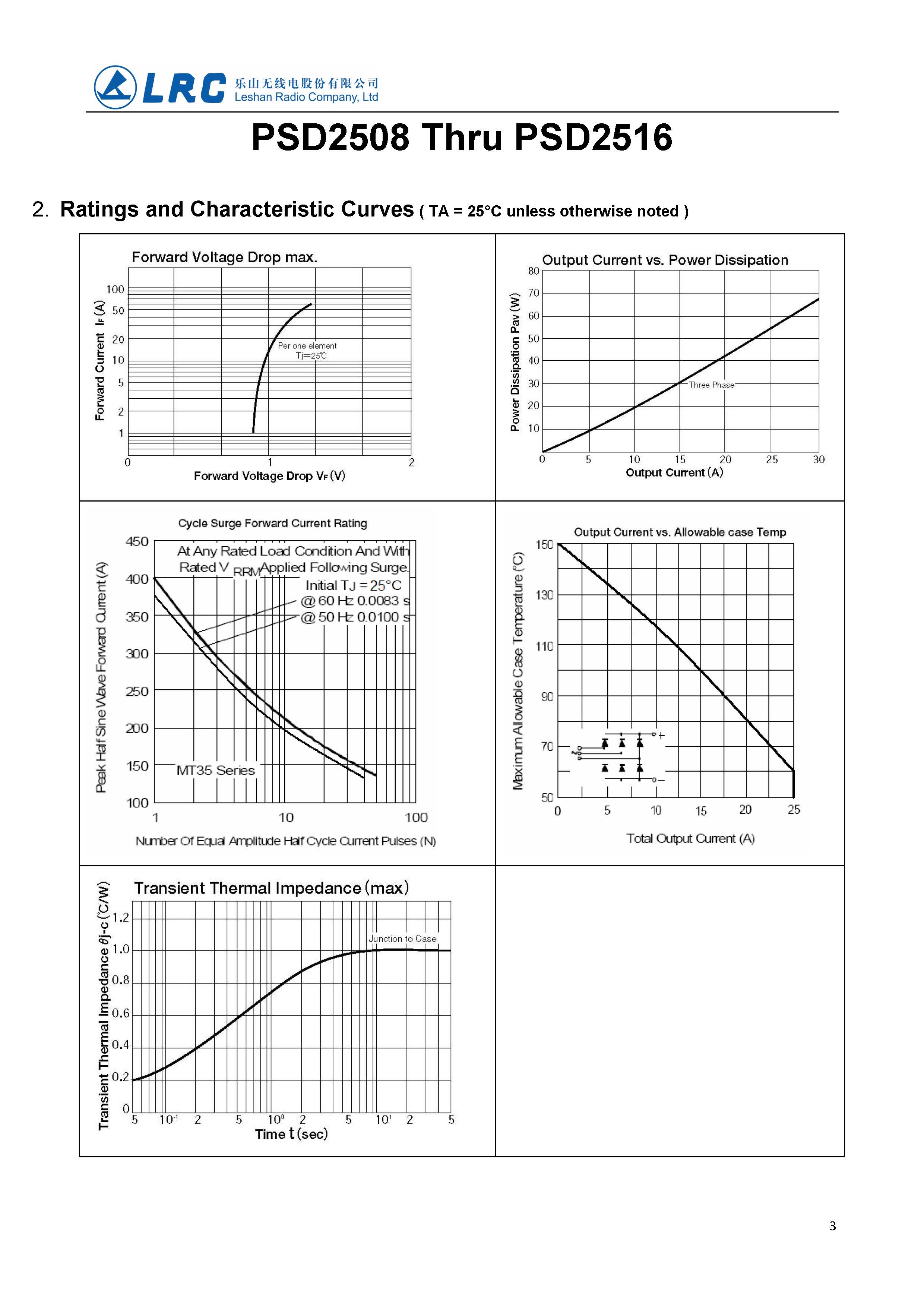 > PSD2516 VRRM 1600V VF 1.1V IR 10uA LRC 三相整流二極管