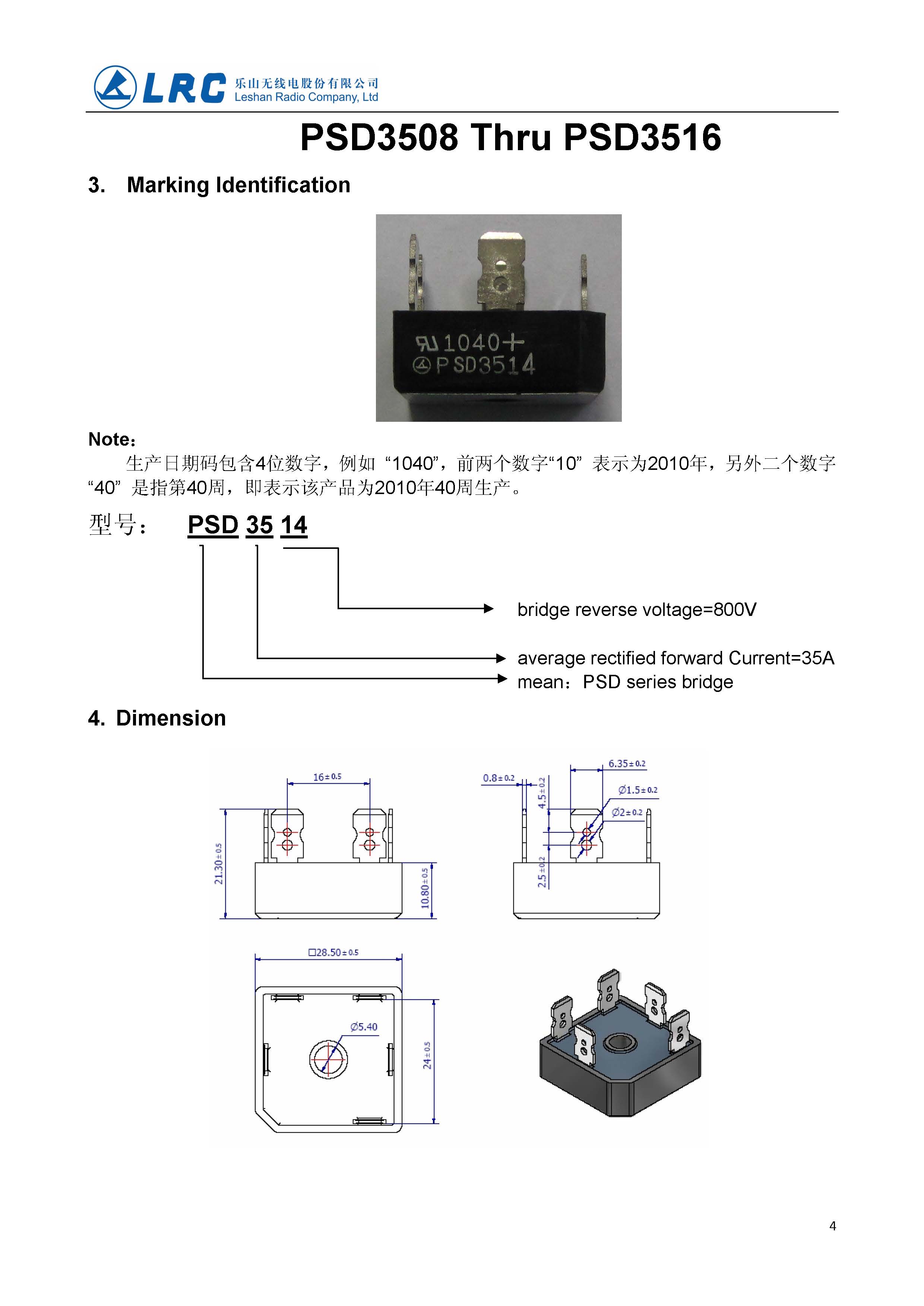 > PSD3512 VRRM 1200V VF 1.1V IR 10uA LRC 三相整流二極管