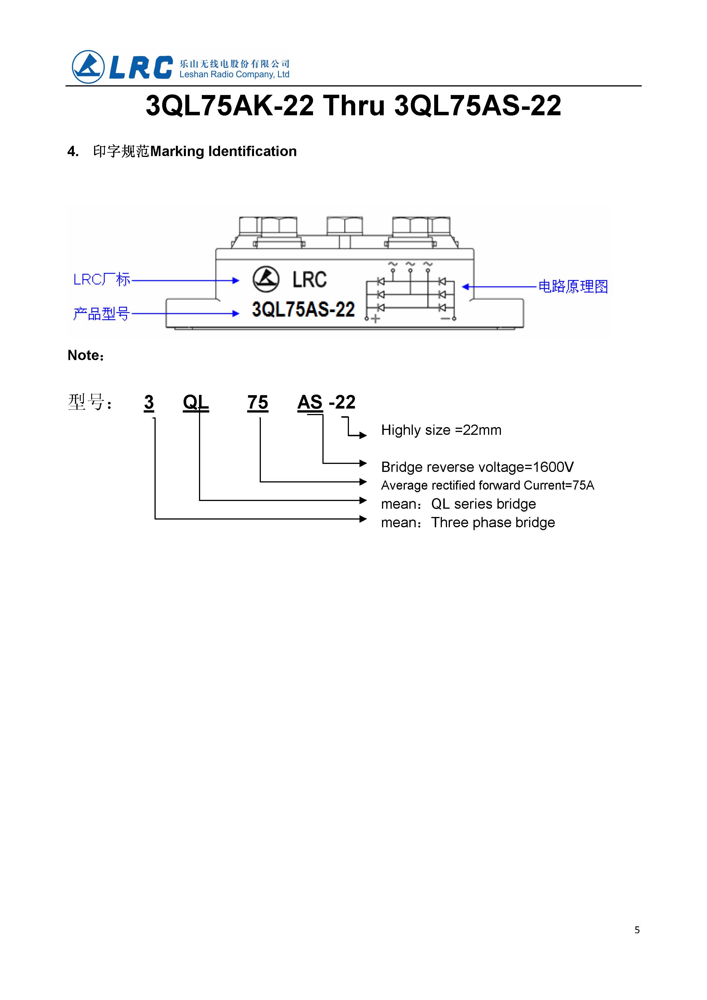 3QL75AK-22 3QL-100-22 VRRM 800V VF 1.2V IR 10uA LRC 三相整流二極管