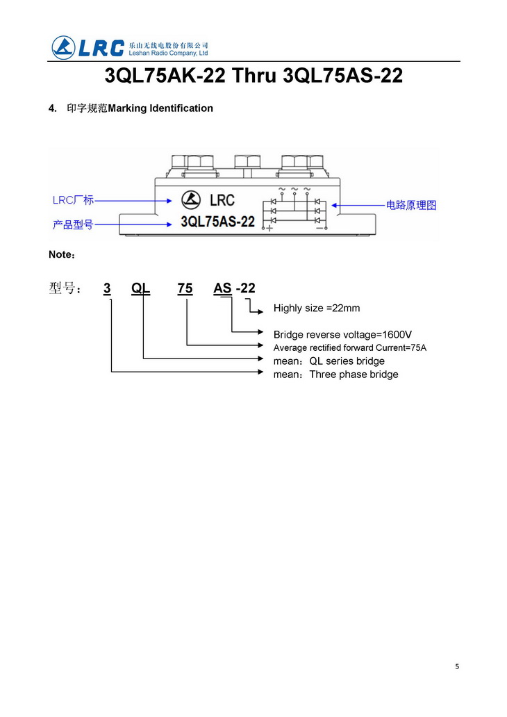 3QL75AS-22 3QL-100-22 VRRM 1600V VF 1.2V IR 10uA LRC 三相整流二極管