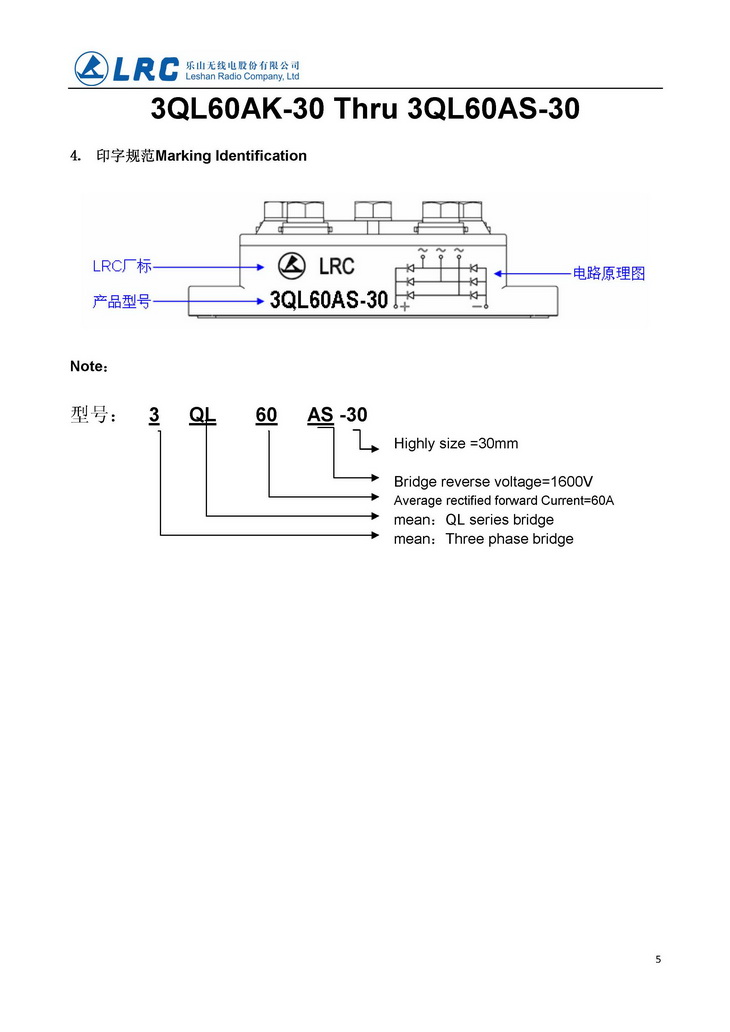 3QL60AM-30 3QL-100-30 VRRM 1000V VF 1.2V IR 10uA LRC 三相整流二極管