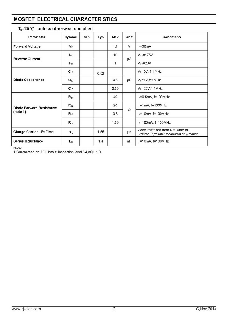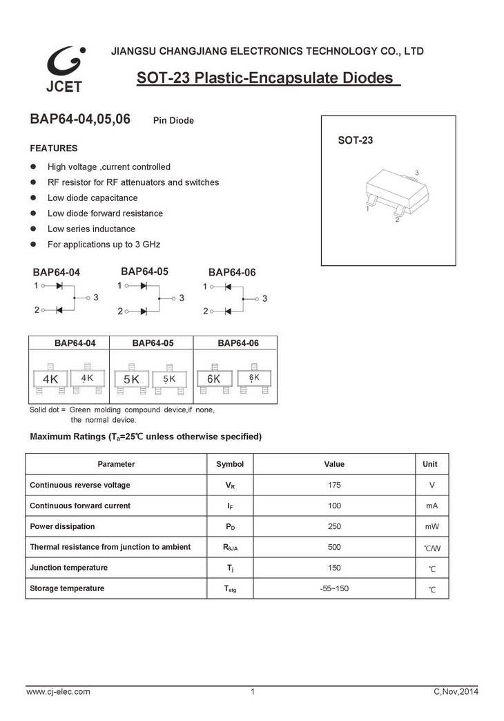 BAP64-04 250mW IF100mA VR175V SOT-23 長(zhǎng)電Pin二極管