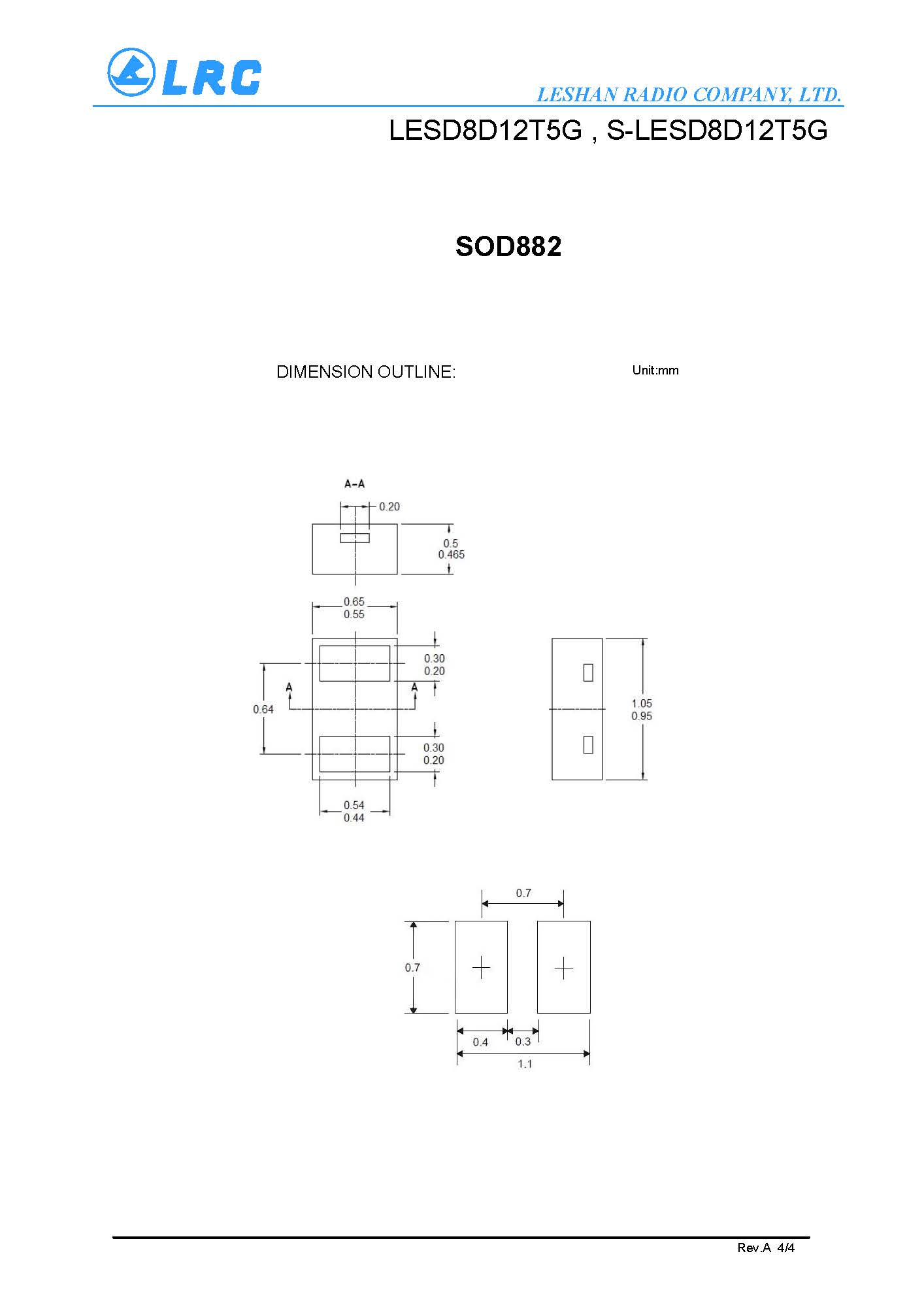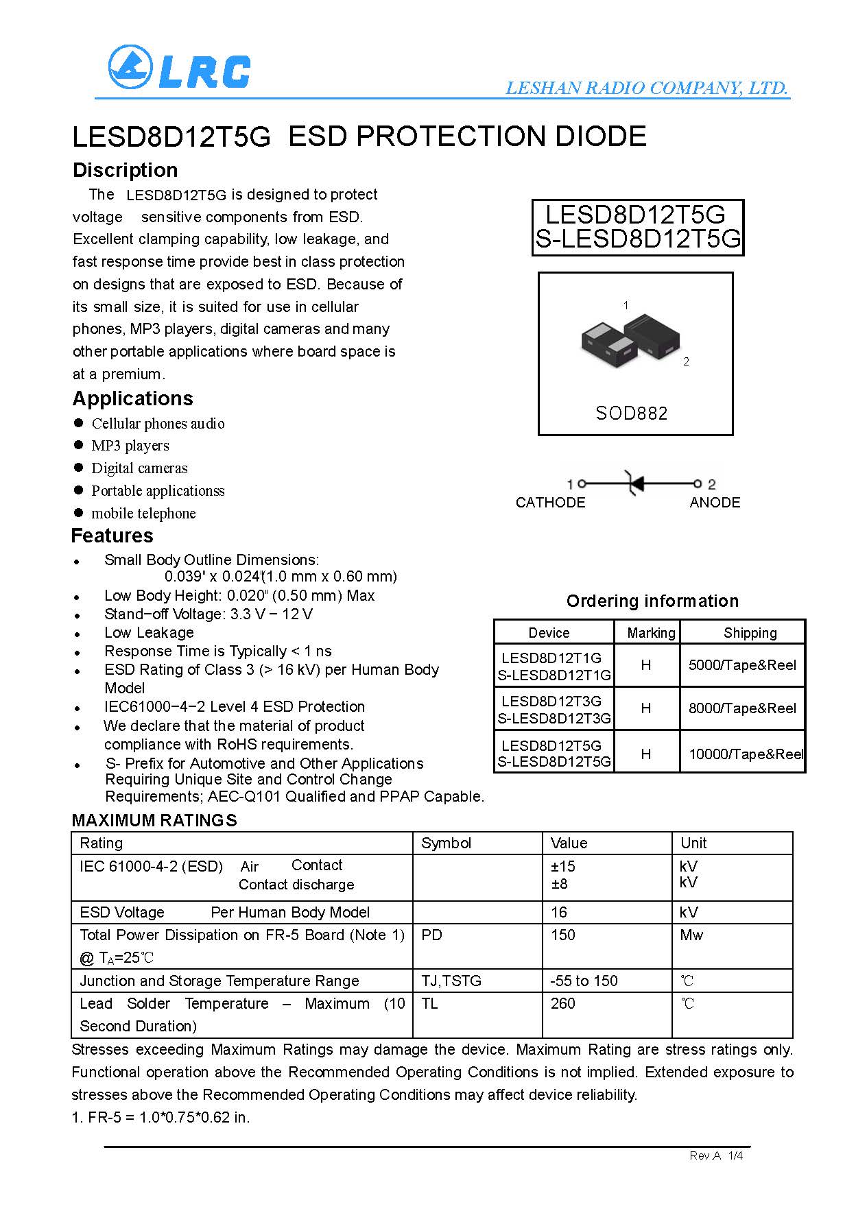 > LESD8D12T5G VRM 12V VC 23.7V CJ 30pF SOD-882 LRC通用ESD保護二極管