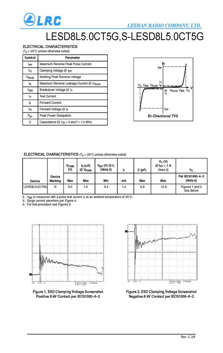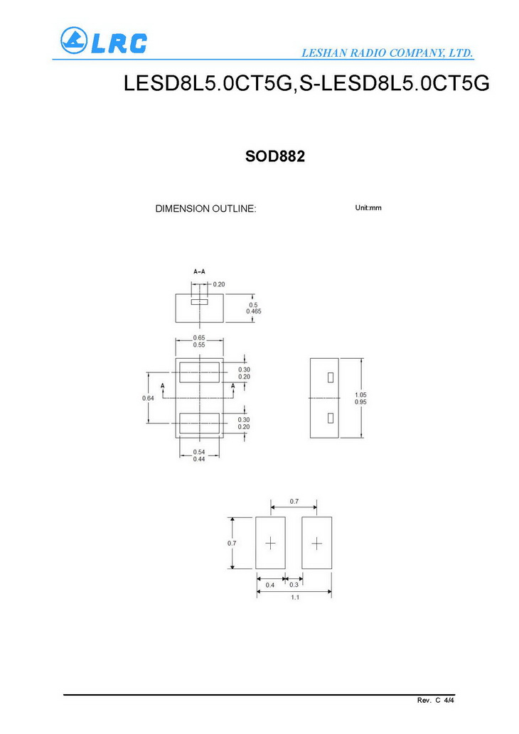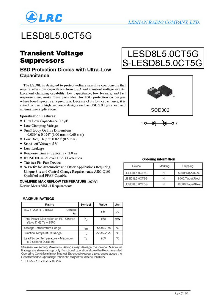 LESD8L5.0CT5G VRM 5V VC 12.9V CJ 0.5pF SOD-882 LRC通用ESD保護二極管