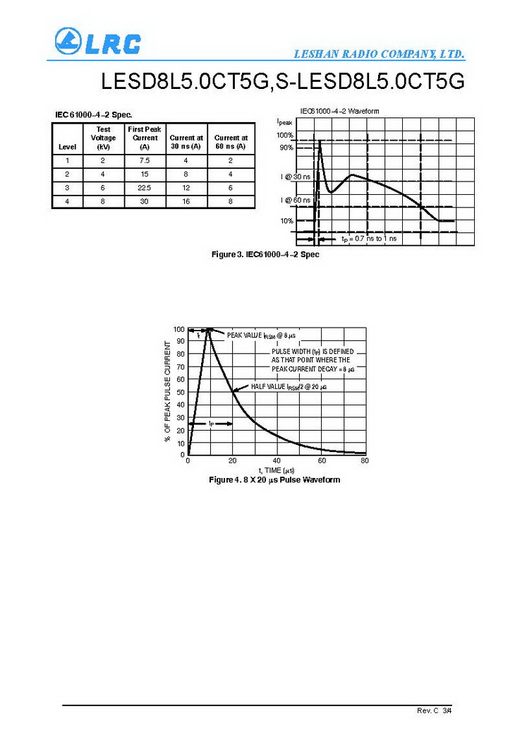 > LESD8L5.0CT5G VRM 5V VC 12.9V CJ 0.5pF SOD-882 LRC通用ESD保護二極管