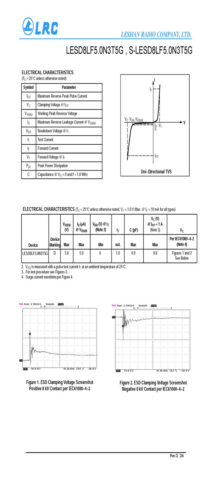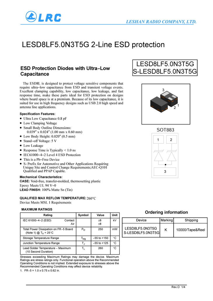 > LESD8LF5.0N3T5G VRM 5V VC 9.8V CJ 0.9pF SOT-883 LRC通用ESD保護二極管