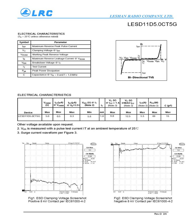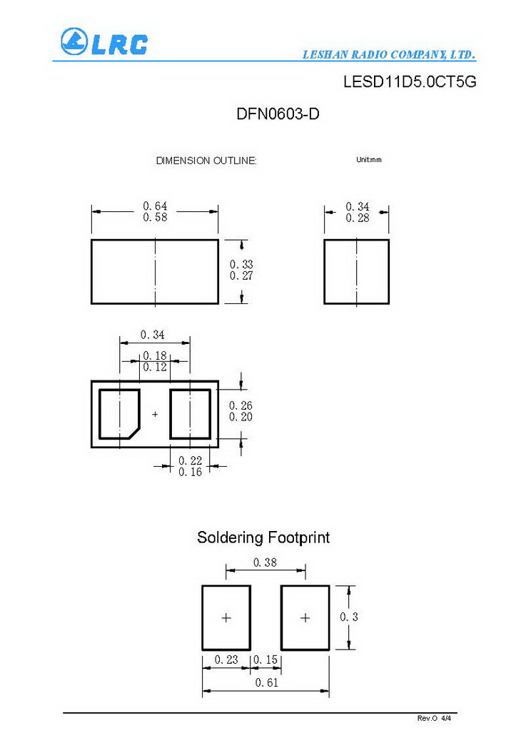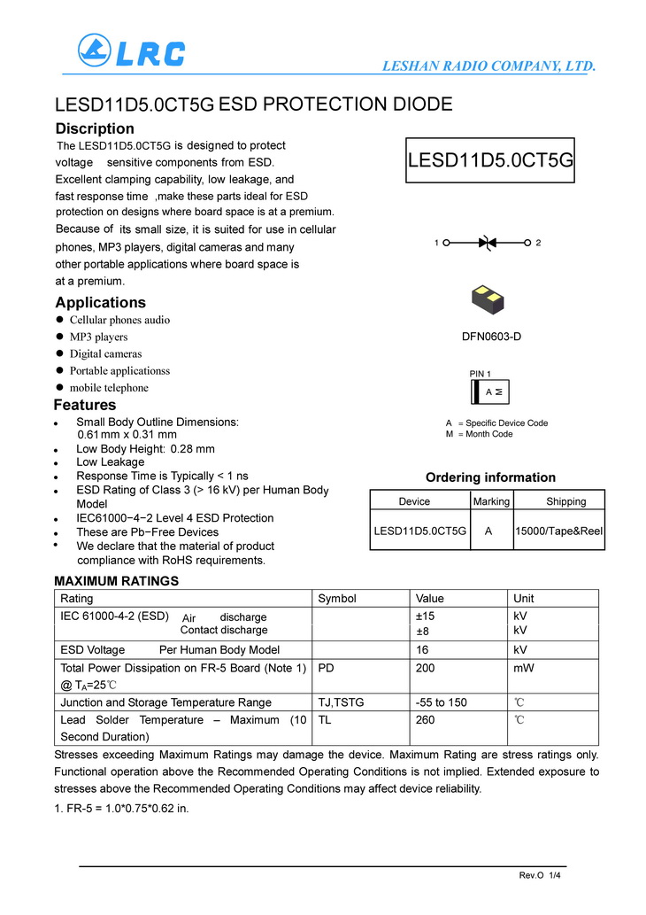 LESD11D5.0CT5G VRM 5V VC 12.5V CJ 15pF DFN0603-D LRC通用ESD保護(hù)二極管