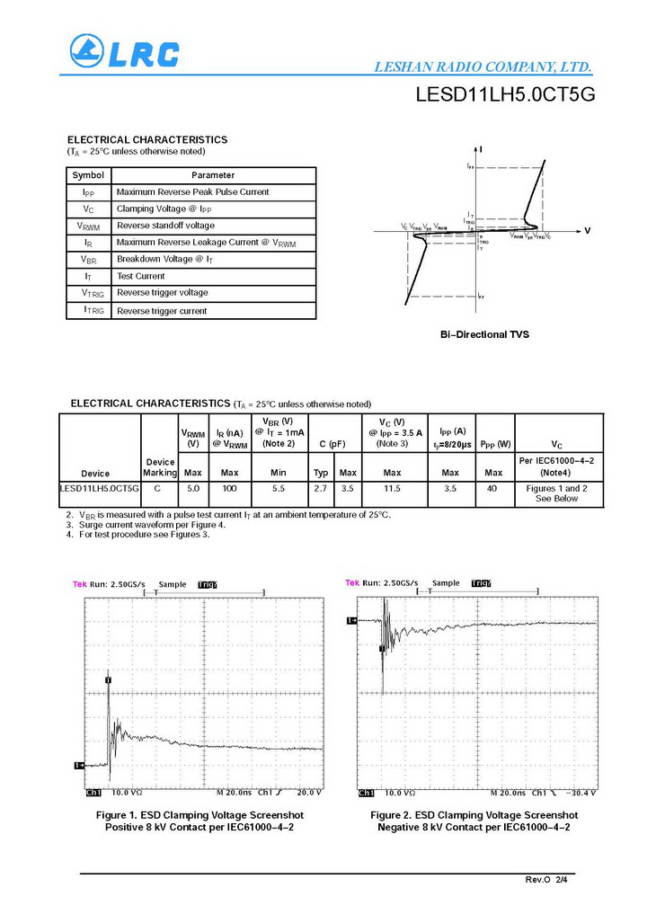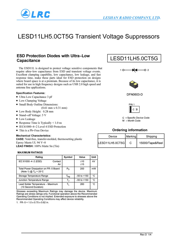 LESD11LH5.0CT5G VRM 5V VC 11.5V CJ 2.7pF DFN0603-D LRC通用ESD保護二極管