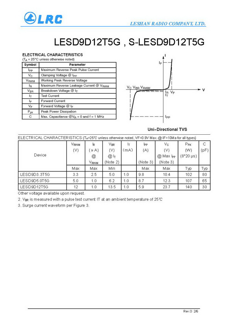 LESD9D12T5G VRM 12V VC 23.7V CJ 30pF SOD-923 LRC通用ESD保護二極管
