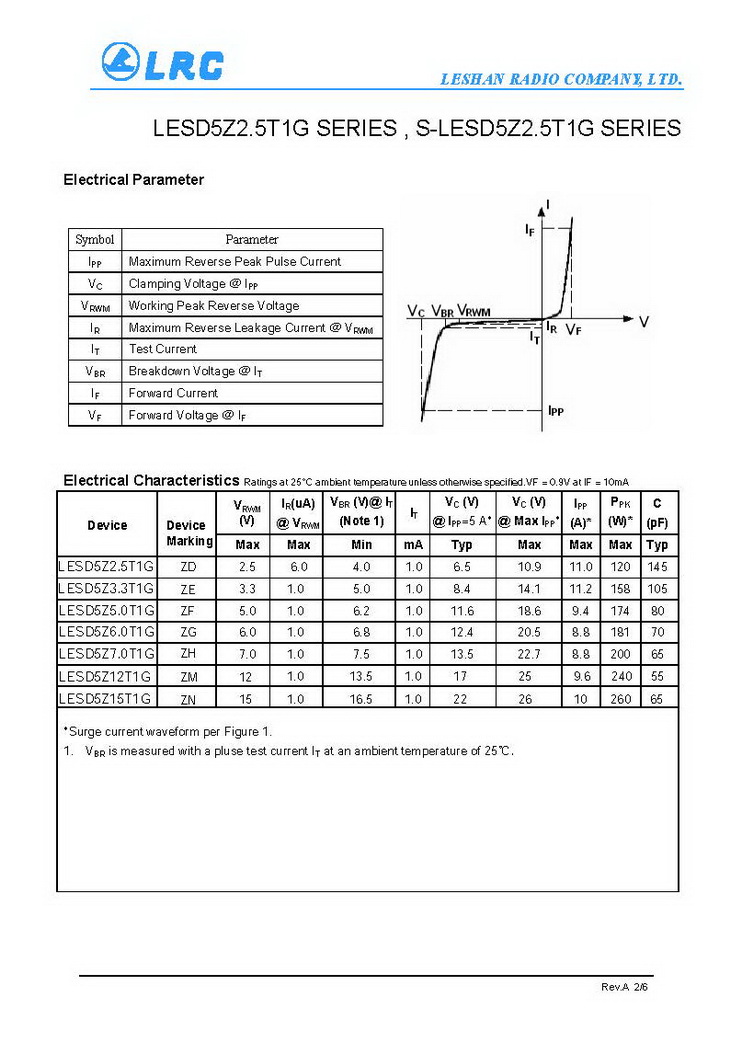 > LESD5Z2.5T1G VRM 2.5V VC 10.9V CJ 145pF SOD-523 LRC通用ESD保護二極管
