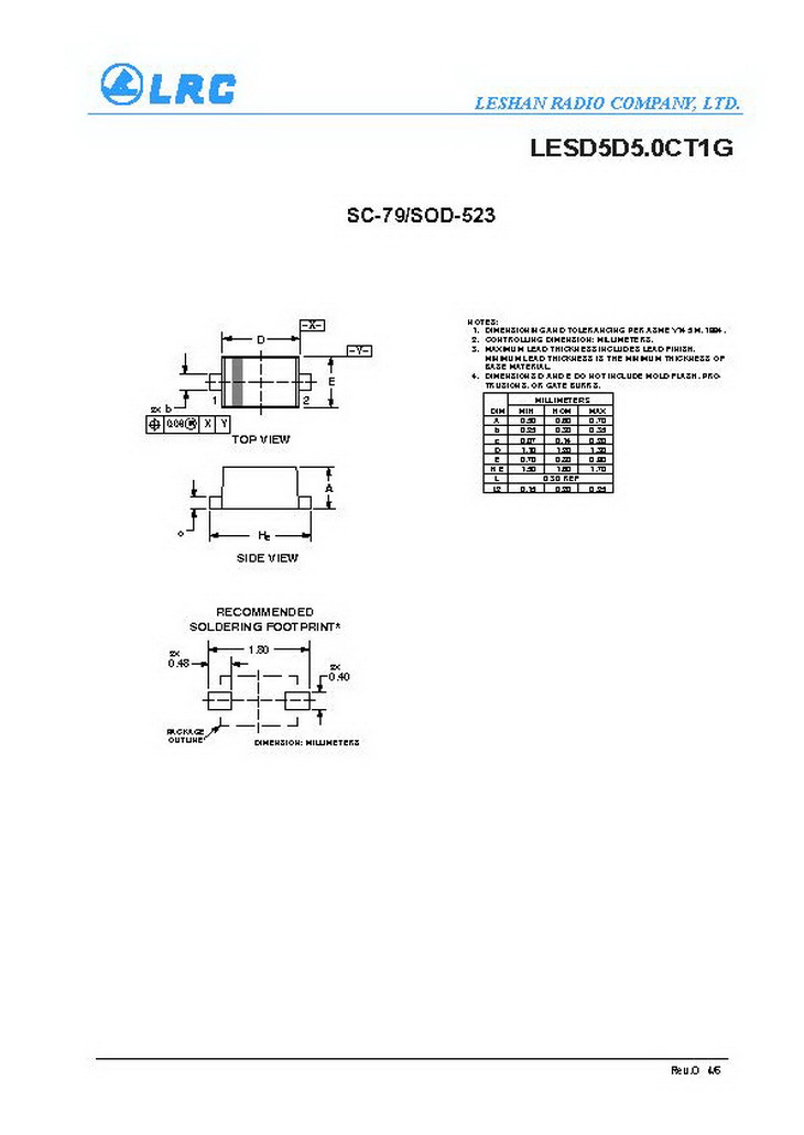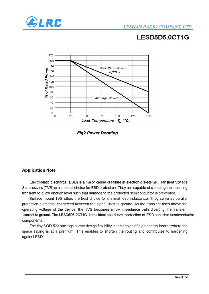 > LESD5D5.0CT1G VRM 5V VC 18.6V CJ 15pF SOD-523 LRC通用ESD保護二極管