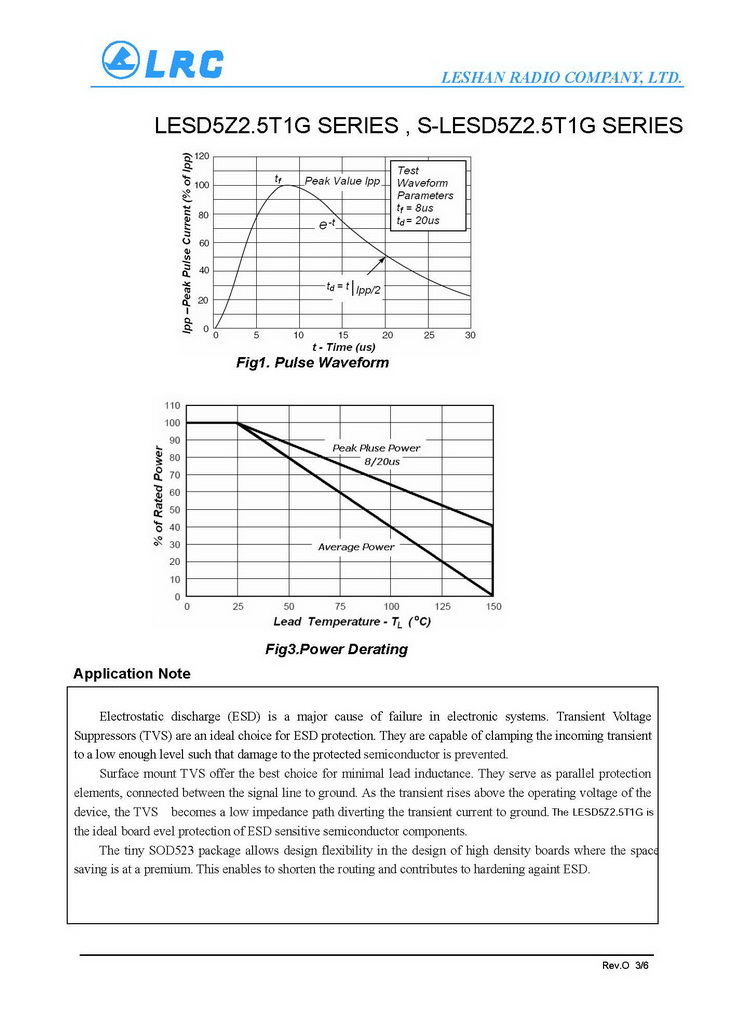 > LESD5Z7.0T1G VRM 7V VC 22.7V CJ 65pF SOD-523 LRC通用ESD保護二極管