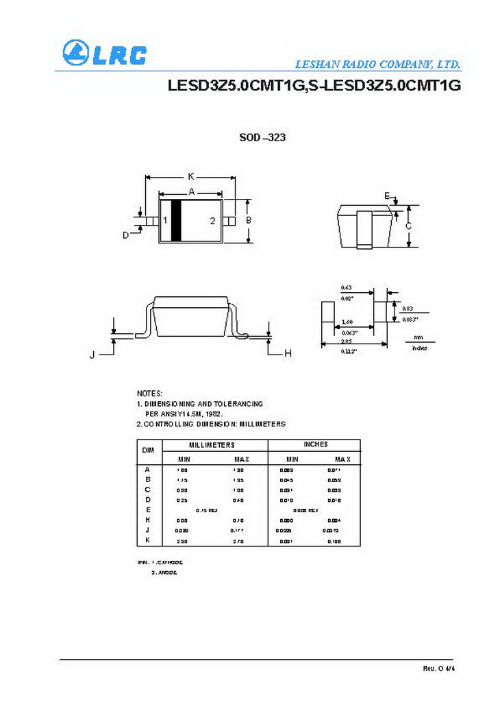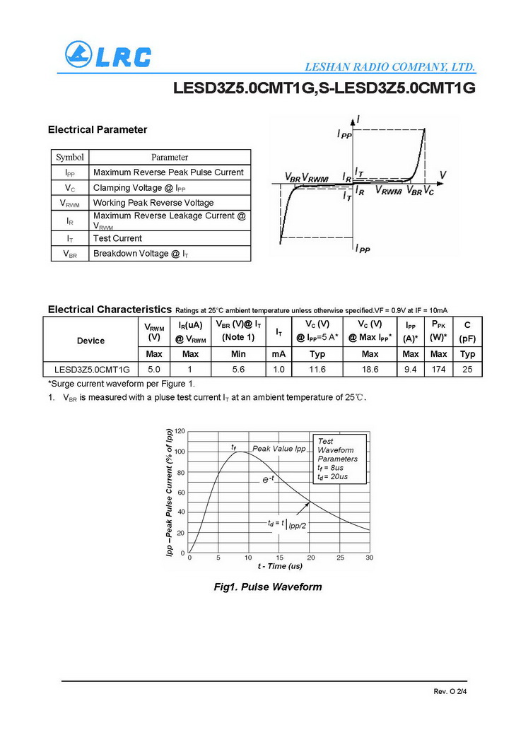 LESD3Z5.0CMT1G VRM 5V VC 11.6V CJ 25pF SOD-323 LRC通用ESD保護二極管
